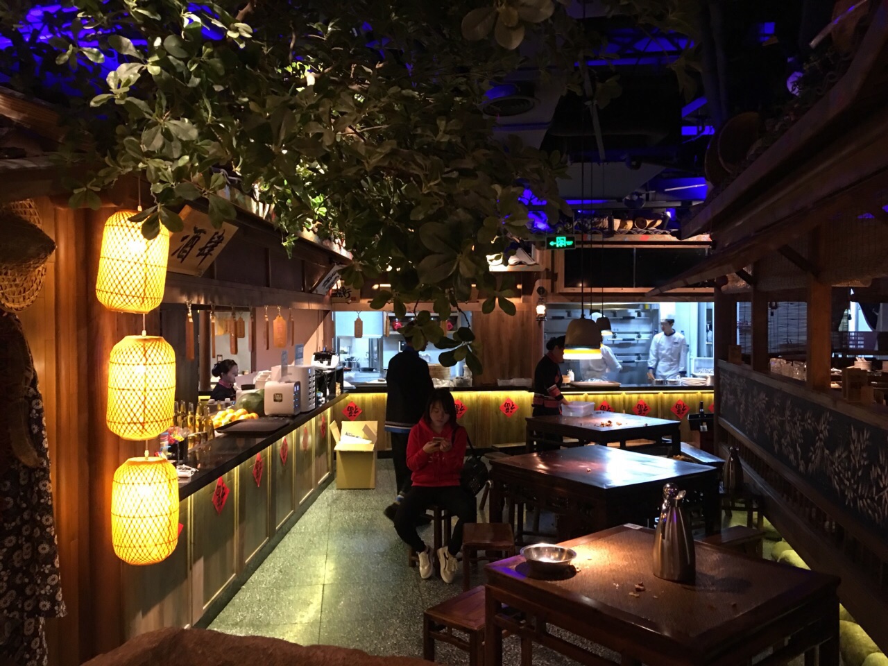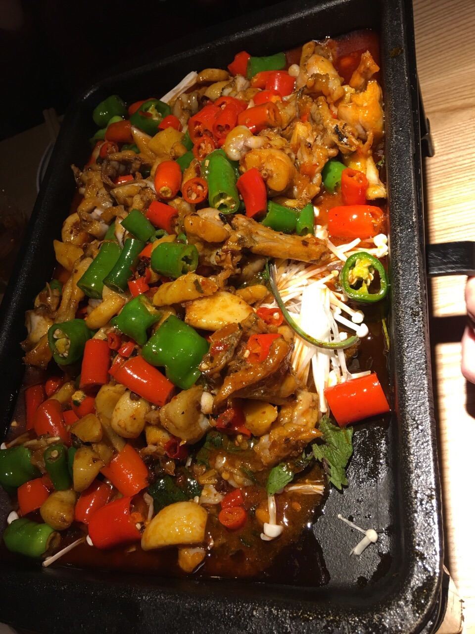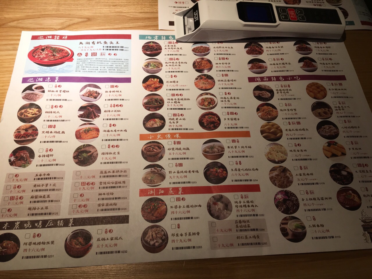 新开业打8折的时候去的。门口有穿少数民族衣服的服务员弹唱,拍两张环境带巡湘记的图片发朋友圈可以免费得到一小瓶辣椒酱。旁边的筐里还有免费的橘子可以吃。环境看上去不错,门口有现做的小饼,去前台扫码付款后可外带。做饼的旁边就是放饮料的地方,比较个性,一些酒水饮料就直接放在碎冰里,一目了然。点菜也比较先进,用一个机器扫码点单。 【火宫殿臭豆腐】很辣,但味道很好。 【黄焖手工白磨豆腐】好像是这个菜名,有点忘记了,里面有肉末,所以味道很鲜,豆腐吃起来很嫩,豆腐味也很重,味道不错。 【铁板蒜茸烤虾】虾整齐的围成一圈,上面铺了一层蒜茸,虾不入味,味道不怎么样。 【豆花】甜品,很好吃,一开始点的时候只剩一杯了,其他现做的还没做好,真悲催,看来销路很好啊。 【口水鸡】凉菜,鸡肉很嫩。 【湖南卤味合拼】有猪耳朵、鸭胗、金钱肚,也是凉菜,味道还好。 【巡湘大湖有机鱼头王】点了¥89的半个鱼头,送面条,这个有点辣,鱼肉一般吧,不过面条放里面味道还蛮好。 【金牌紫苏牛蛙】看上去蛮大一盘,其实底下垫的是金针菇,盘子很浅,辣椒大蒜头偏多,牛蛙的量一般,不是很多,不过味道还可以。