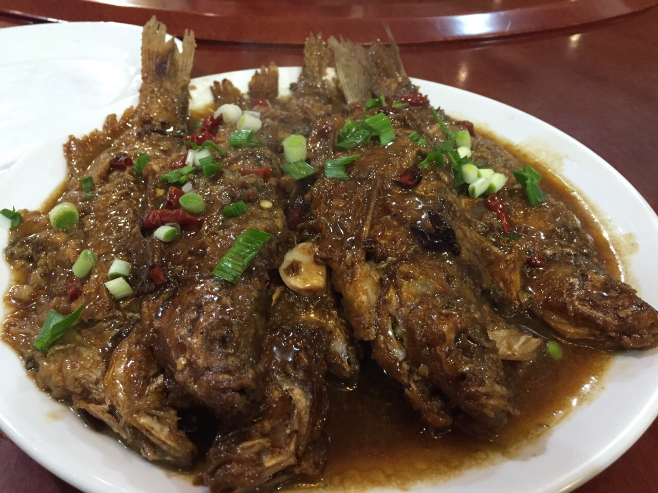 特别喜欢杂鱼贴饼,不仅杂鱼入味,就连饼也很有嚼劲,十分好吃。凤阳的土菜偏辣,基本每个菜都要用辣椒来炒凤阳的土菜偏辣,基本每个菜都要用辣椒来炒。一开始是吃不惯的,但是多吃两回以后,发现这个辣味,外面还是很难模仿的,于是吃上了瘾。特别喜欢杂鱼贴饼,不仅杂鱼入味,就连饼也很有嚼劲,十分好吃。
