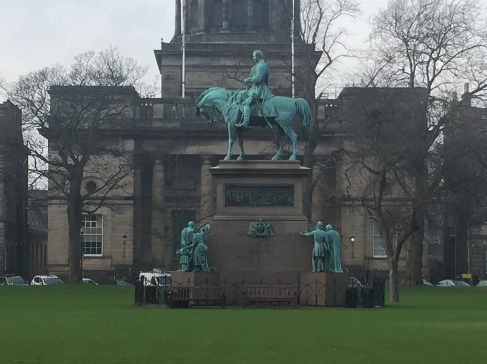 这尊令人印象深刻的骑术雕像坐落在夏洛特广场花园的中心,雕像是约翰·这尊令人印象深刻的骑术雕像坐落在夏洛特广场花园的中心,雕像是约翰·斯特尔爵士雕刻而成,是为纪念阿尔伯特亲王而设计的,三组较低的数字都是由不同的艺术家设计和雕刻的。
