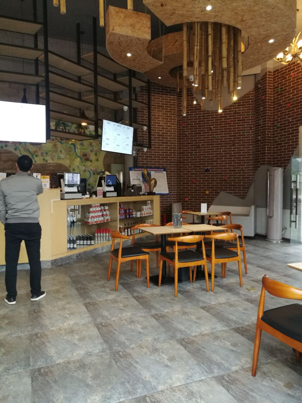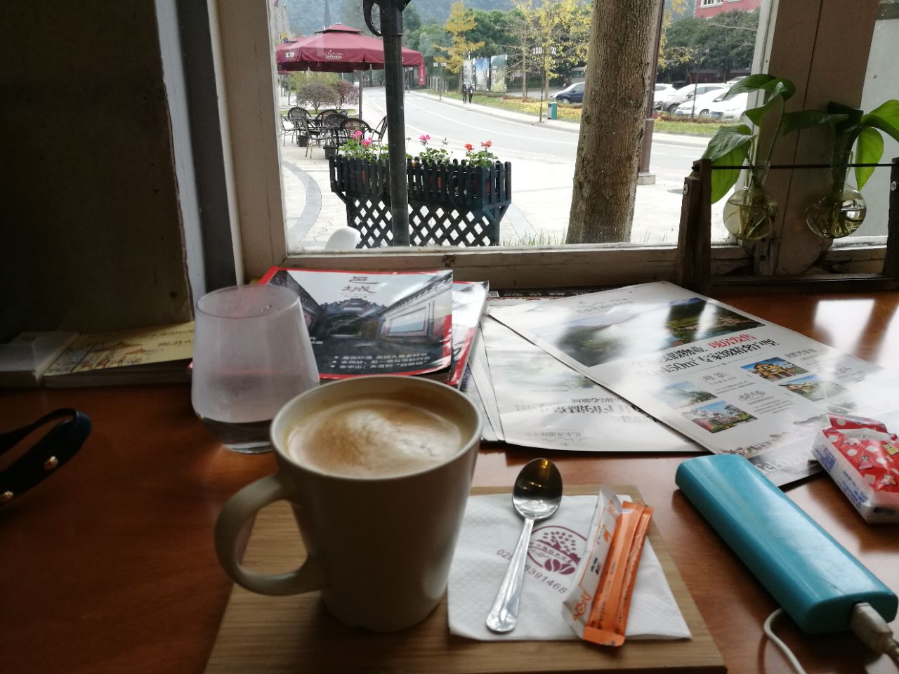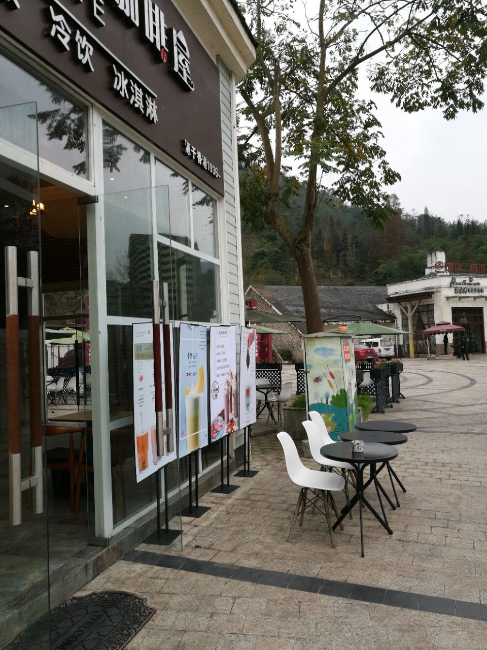 去西岭雪山泡温泉,路过这家咖啡店,从外面看挺有格调。到了温泉酒店看天色还早,看了看附近好像只有这一家咖啡馆,就准备去坐坐。这家咖啡馆是独立的一栋,就在路边很显眼。进门感觉环境不错很清爽,只有一桌客人。点了卡布基诺和原味拿铁,一共59元。看了看其他咖啡基本30多,还有奶茶便宜一点。窗外的风景很舒服,可以看到很多金色的树,外面也很清净,很适合我的口味。很意外咖啡比较好喝,感觉用的材料挺好的,就是没有拉花有点遗憾。还有天气比较冷也没有开空调,这个有点无语。问了店员说平时人比较少,周末来消费的比较多,可惜了这么好一个地方。