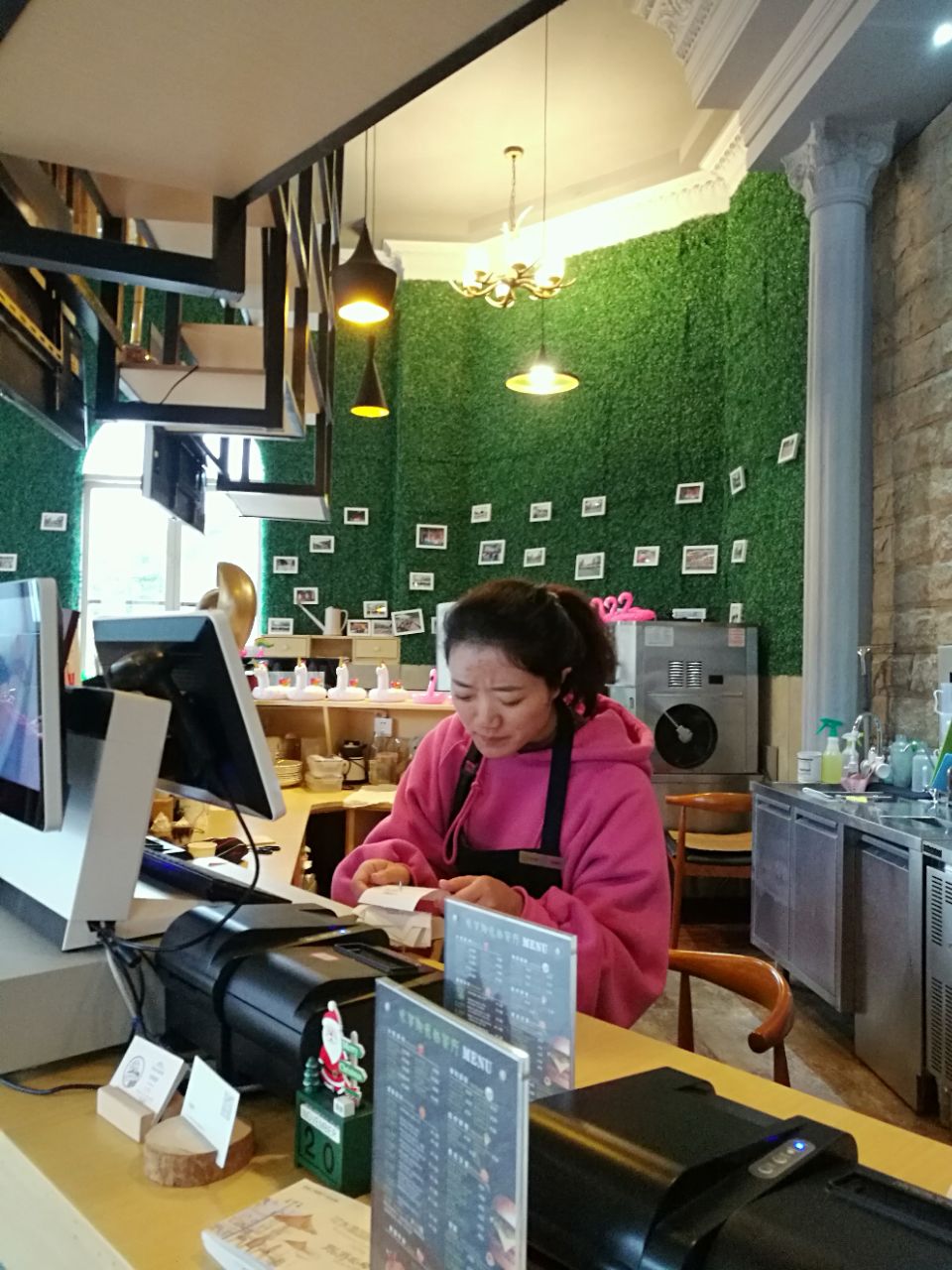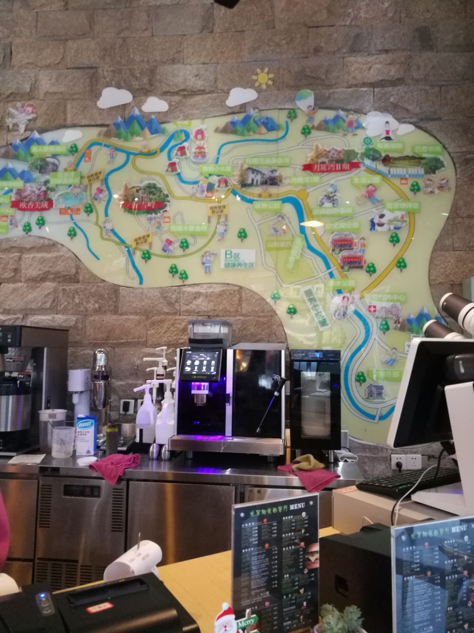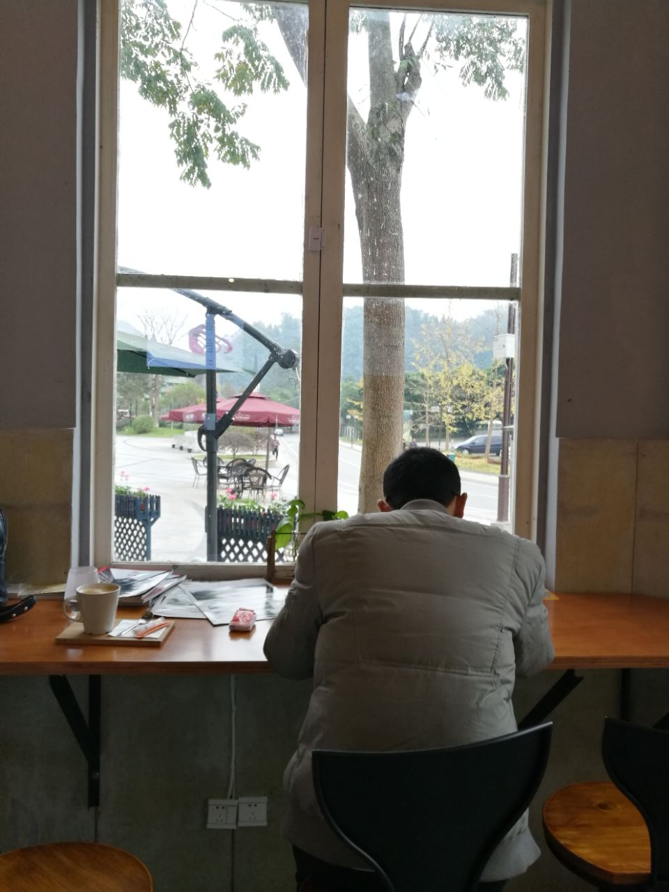 去西岭雪山泡温泉,路过这家咖啡店,从外面看挺有格调。到了温泉酒店看天色还早,看了看附近好像只有这一家咖啡馆,就准备去坐坐。这家咖啡馆是独立的一栋,就在路边很显眼。进门感觉环境不错很清爽,只有一桌客人。点了卡布基诺和原味拿铁,一共59元。看了看其他咖啡基本30多,还有奶茶便宜一点。窗外的风景很舒服,可以看到很多金色的树,外面也很清净,很适合我的口味。很意外咖啡比较好喝,感觉用的材料挺好的,就是没有拉花有点遗憾。还有天气比较冷也没有开空调,这个有点无语。问了店员说平时人比较少,周末来消费的比较多,可惜了这么好一个地方。