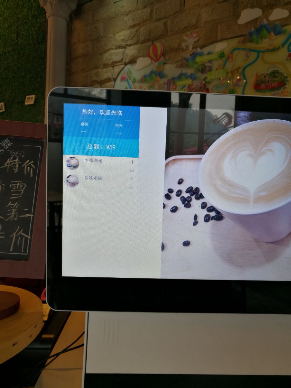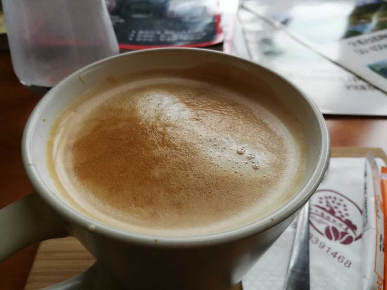 很意外咖啡比较好喝,感觉用的材料挺好的,就是没有拉花有点遗憾。点了卡布基诺和原味拿铁,一共59元