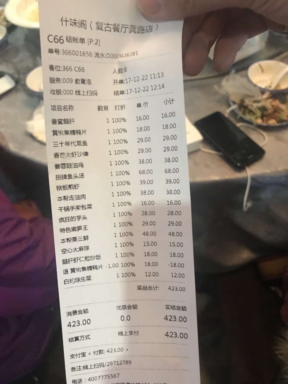 说心里话真的是一家很棒的餐厅,带老人家来吃的午饭,一桌菜,老人说要千百元了,实际只有四百出头,真的性价比很高!比较推荐的菜熏鱼,入味!疯狂的芋头,用小铁锅装的,吃了个底朝天!蒸三鲜,地道的上海本帮菜!还有大鱼头汤只有68元!老人家纷纷表示还会来吃!棒一个!