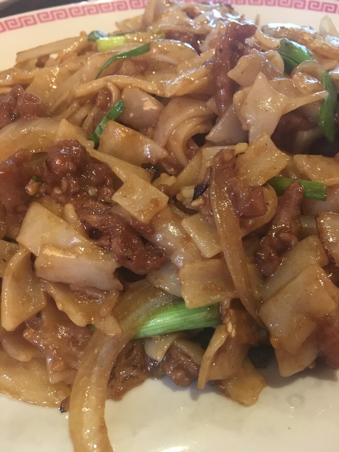 The smaller menu is more traditional Chinese it...The smaller menu is more traditional Chinese items like this beef stir fried rice noodle. Get it!
