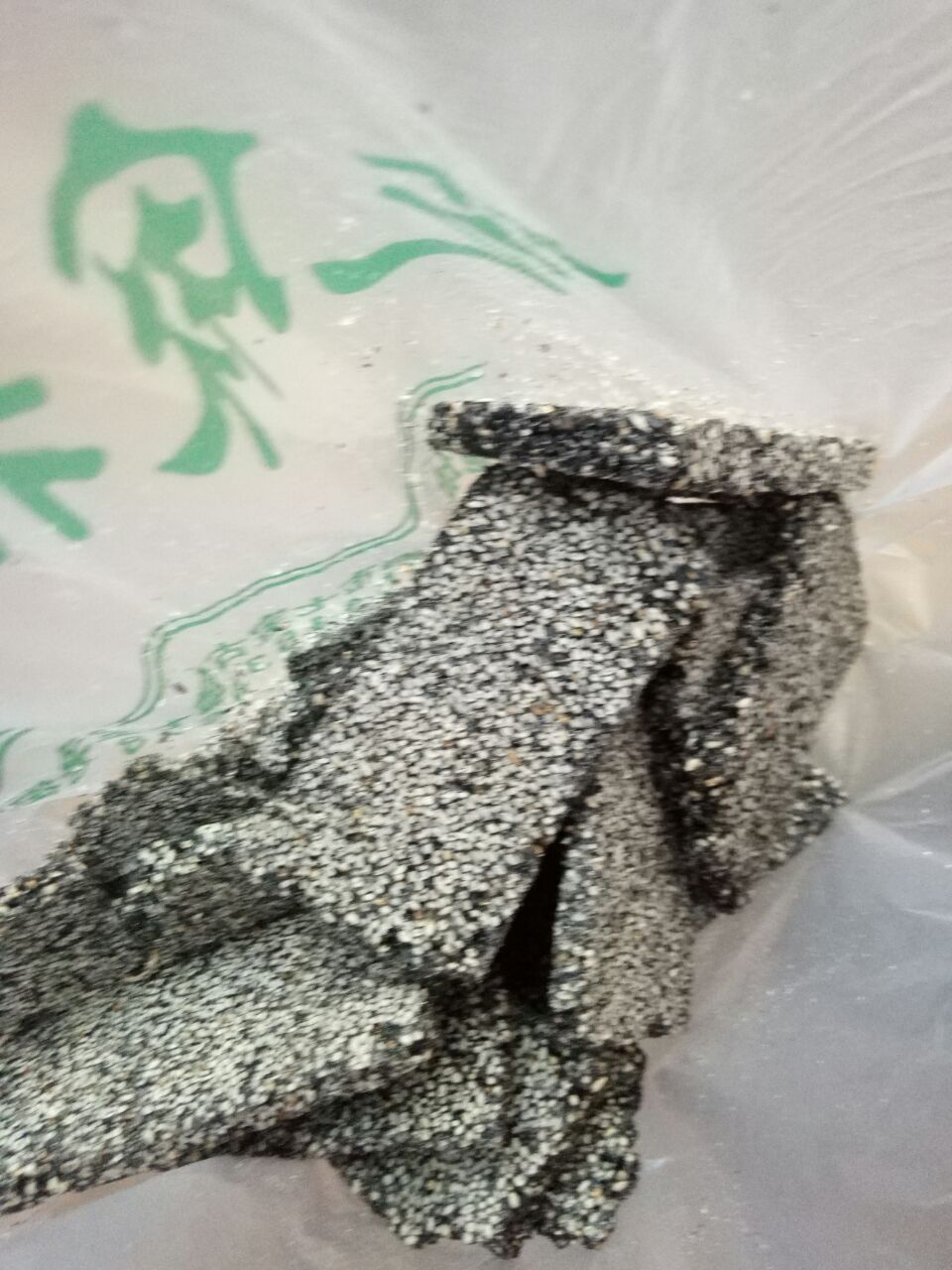 每次到七宝嘴巴就特别的馋,明明几乎一个月去一次七宝的呀…… 然后想吃那种可以边走边吃的零食,看见花生芝麻片和芝麻片,尝试以后决定还是芝麻片,更香一点。 看见有的人尝一拿很大一片,吃完不买,服务员也不说什么,我是存心要买,还是很客气问她可不可以给我尝,给一点点没有关系,那个不耐烦的脸啊…… 吃多有点腻。