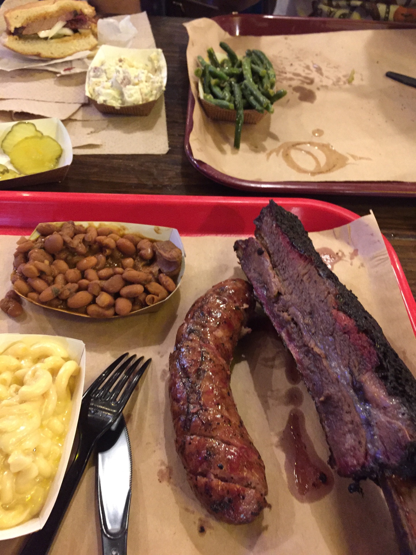 Delicious beef ribs, sausage, mac n cheese, beans. Not overly salty or spicy, line moves fast, good prices.