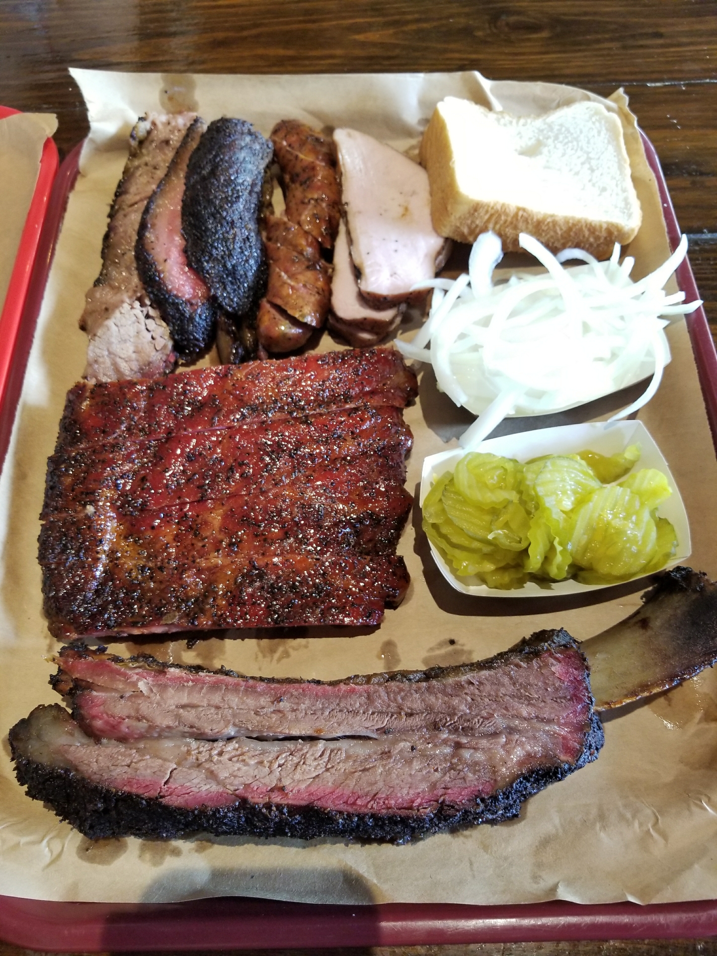 Go with a group so you can try everything. Pork ribs, brisket, turkey, & jalapeno sausage were all stand-outs. Cole slaw was pretty tasty as well!