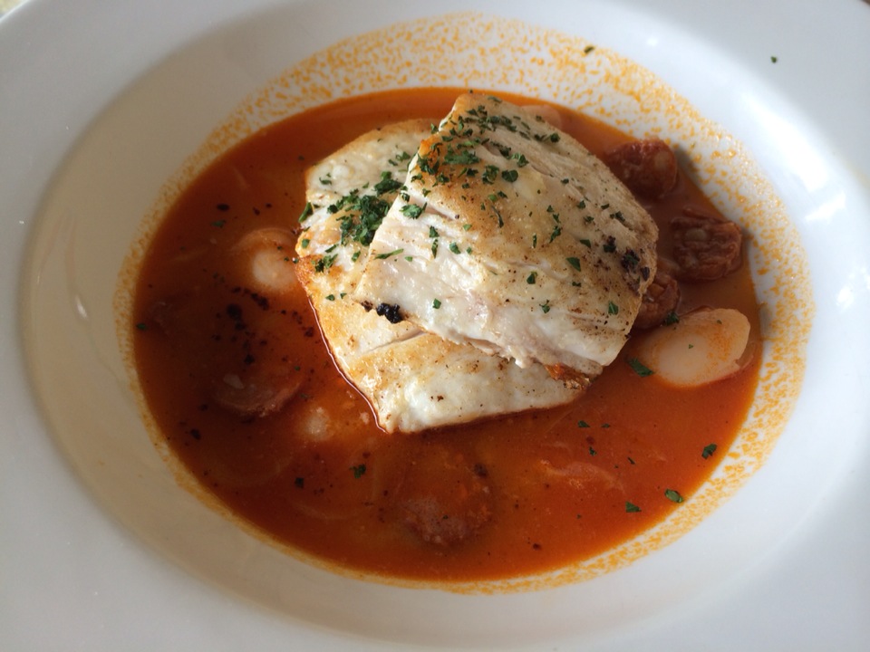Todo ! La ensalada garapiñada y el pescado con ...Todo ! La ensalada garapiñada y el pescado con chorizo y habas EXQUISITOS !