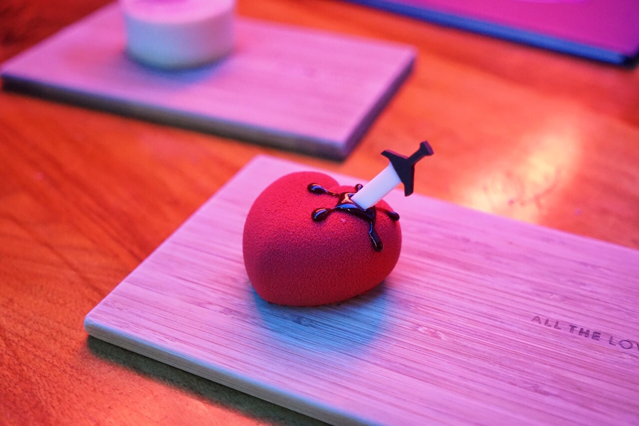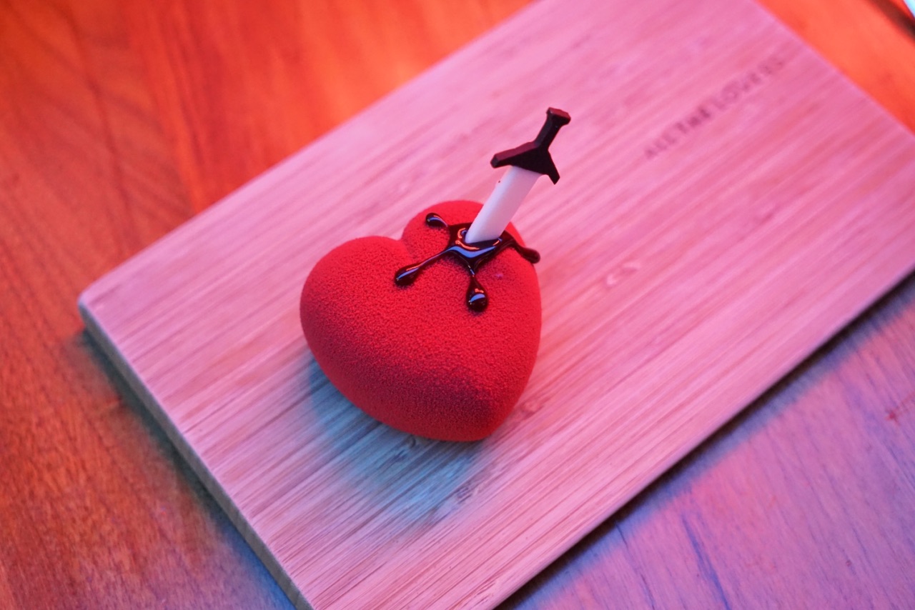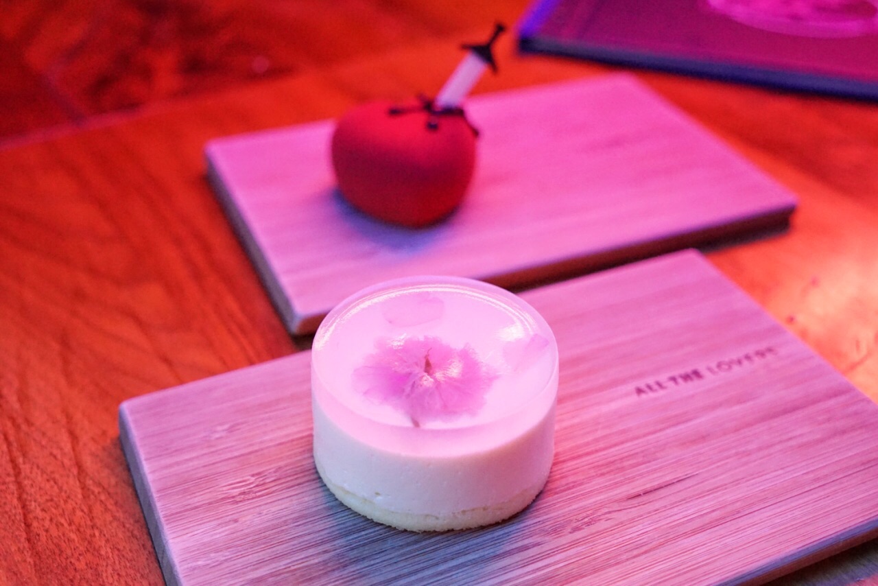 All the lovers 魅力光影甜品店 All the lovers 这家店在我的收藏夹中许久 由一只手握酒杯的霸王龙“为其代言” 广告标语为 “you look delicious” 暗格调的店内 闪烁着五彩的led灯 伴随轻快的音乐 更像是一家酒吧 着实有些小情调 欧洲有关吸血鬼的传说中 记载到吸血鬼被木剑穿心 防止死而复活 这款名为“love”的甜品 形象入木三分 溅出的鲜血由巧克力点缀 颜值在线的红色爱心慕斯 巧克力包裹的内里有两层馅 带有树莓的酸味 整体口味偏甜的一款甜品 三月弥生 三月弥生取自日本民间对月份的别称 三月也是樱花盛开之时 这款慕斯的芝士蛋糕层浓郁 顶部果冻部分通透 显现了盐渍樱花之美 是不是难以抵挡这份甜蜜的诱惑 冬日的午后 坐在街边的甜品店 手持一杯咖啡 品尝一份甜品 享受此份静谧的时光