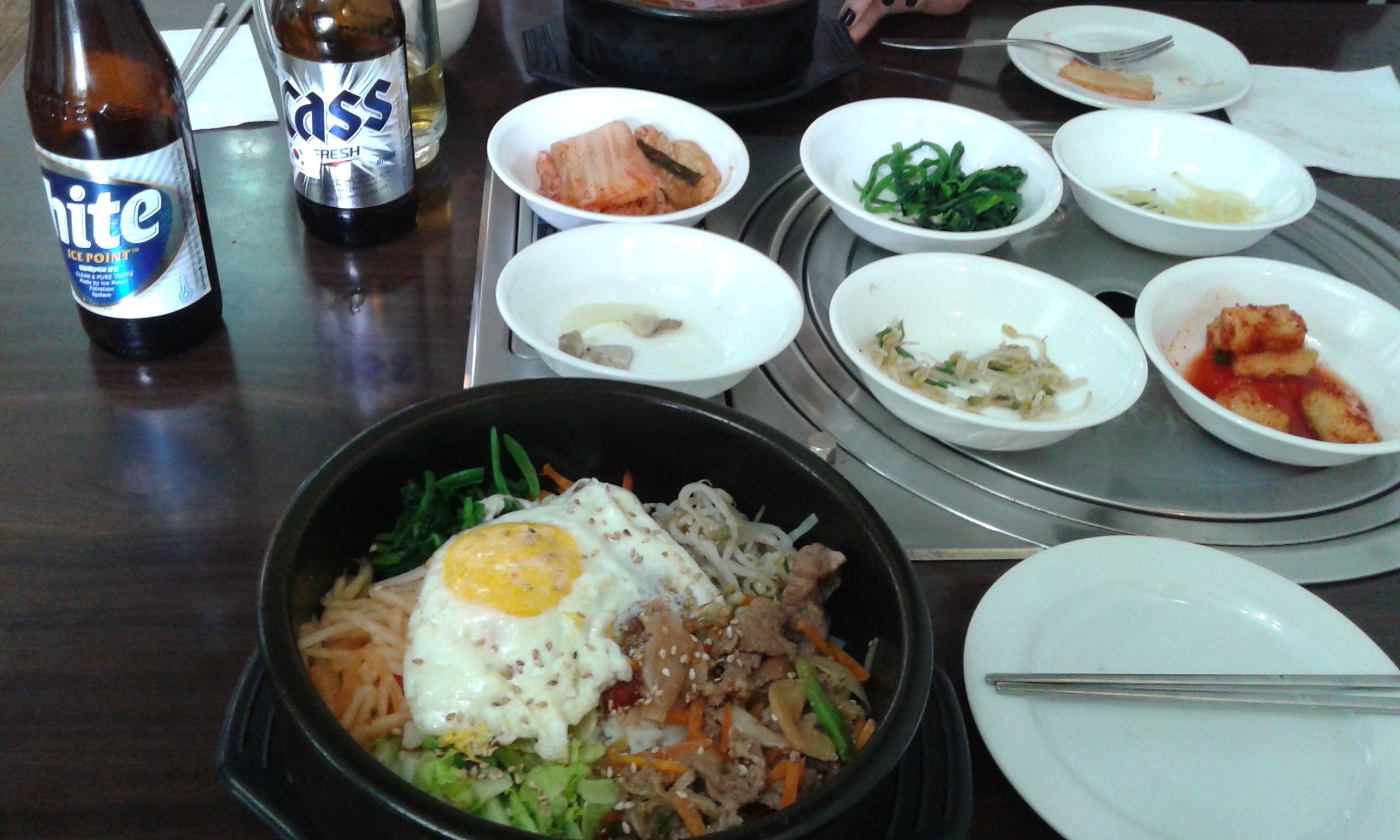 El bibibamp y las cervezas coreanaa hite y caas, aunque el sazon es mejor en otros lugares y el ambiente es un poco aburrido, pero es un buen lugar para probar la parrilla coreana clasica