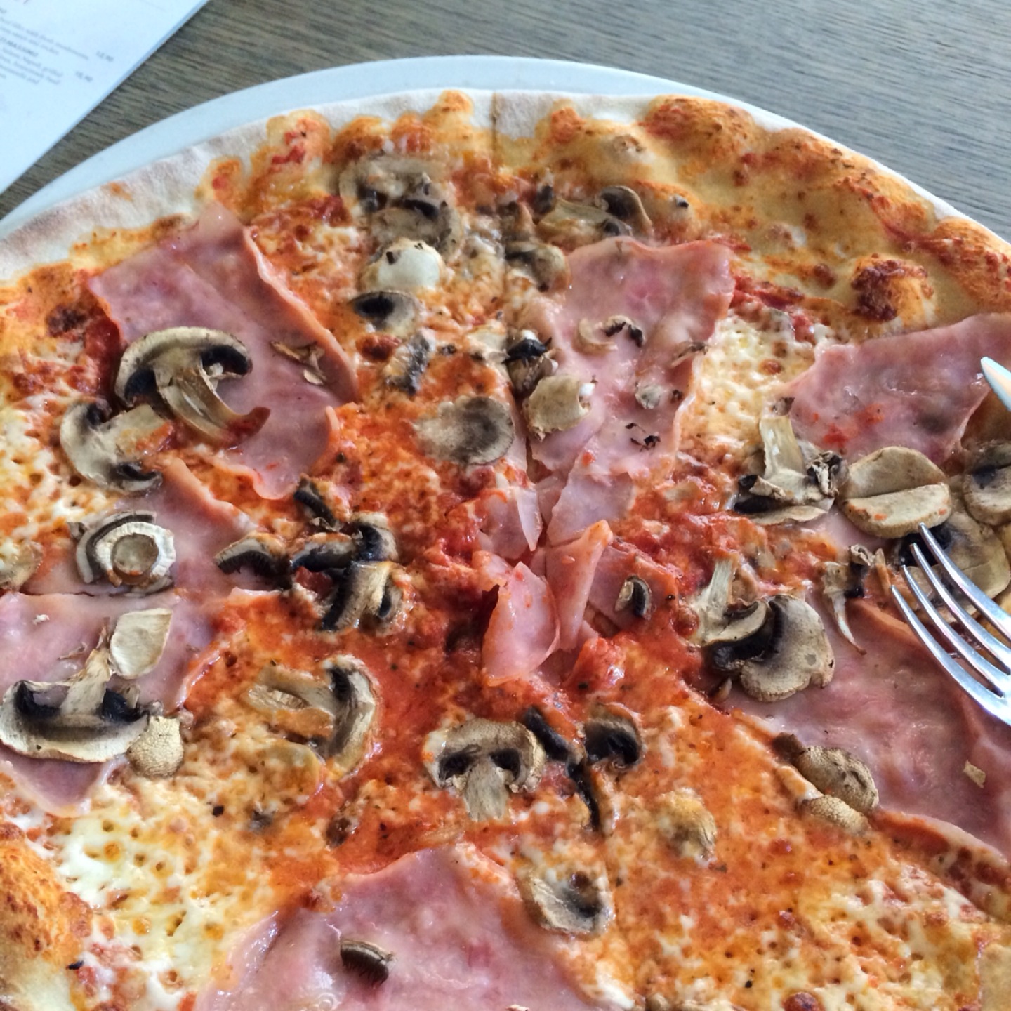 The most delicious pizza Prosciutto funghi. Unforgettable Carbonara! Wish I had my lunch time every day at Vapiano...
