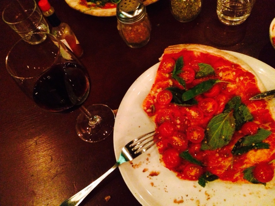 Marinara is for vegetarians. Tasty without cheese. Pizzas can be ordered gluten free. Best for late pizza and wine. Try hell yes! Red wine.