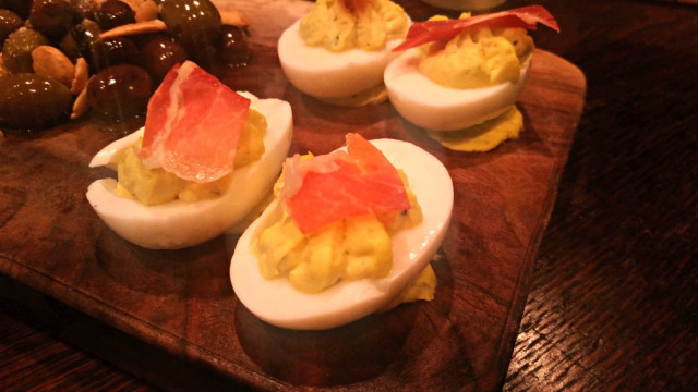 The menu is filled with all sorts of goodies like their take on deviled eggs, with remoulade, serrano ham and chives. There’s a bite of onion and the saltiness from the ham. They are wonderful.