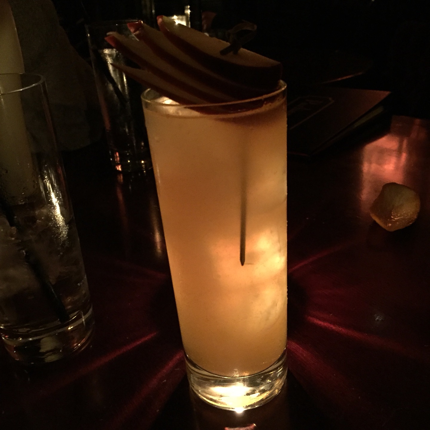 bushwacker cocktail: buffalo trace bourbon, scotch bonnet pepper jam, lemon, apple-ginger soda, and tonka bean infused port