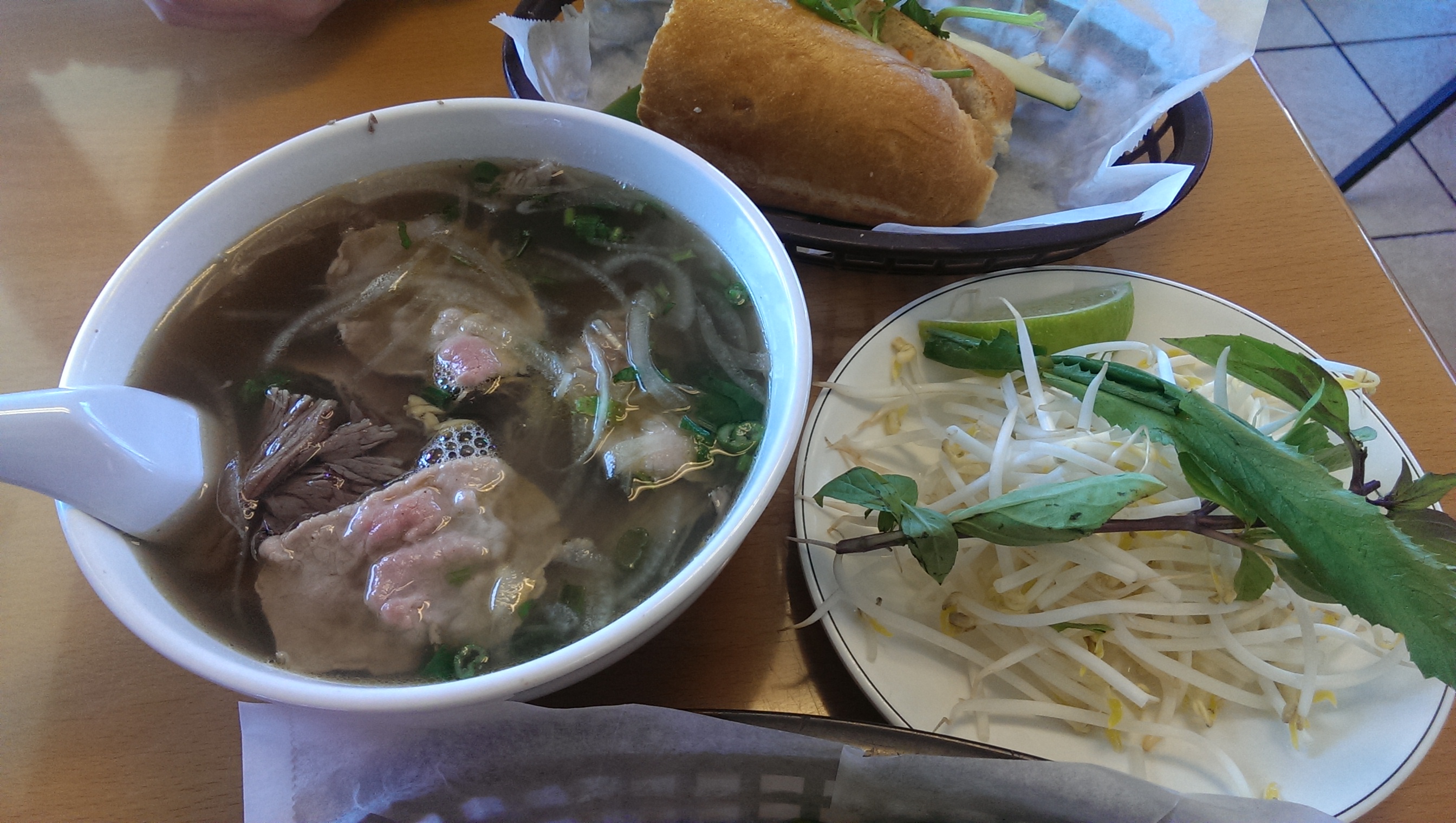 网友2015-03-09Their lunch combo of beef pho and half a banh m...Their lunch combo of beef pho and half a banh mi is a great deal!