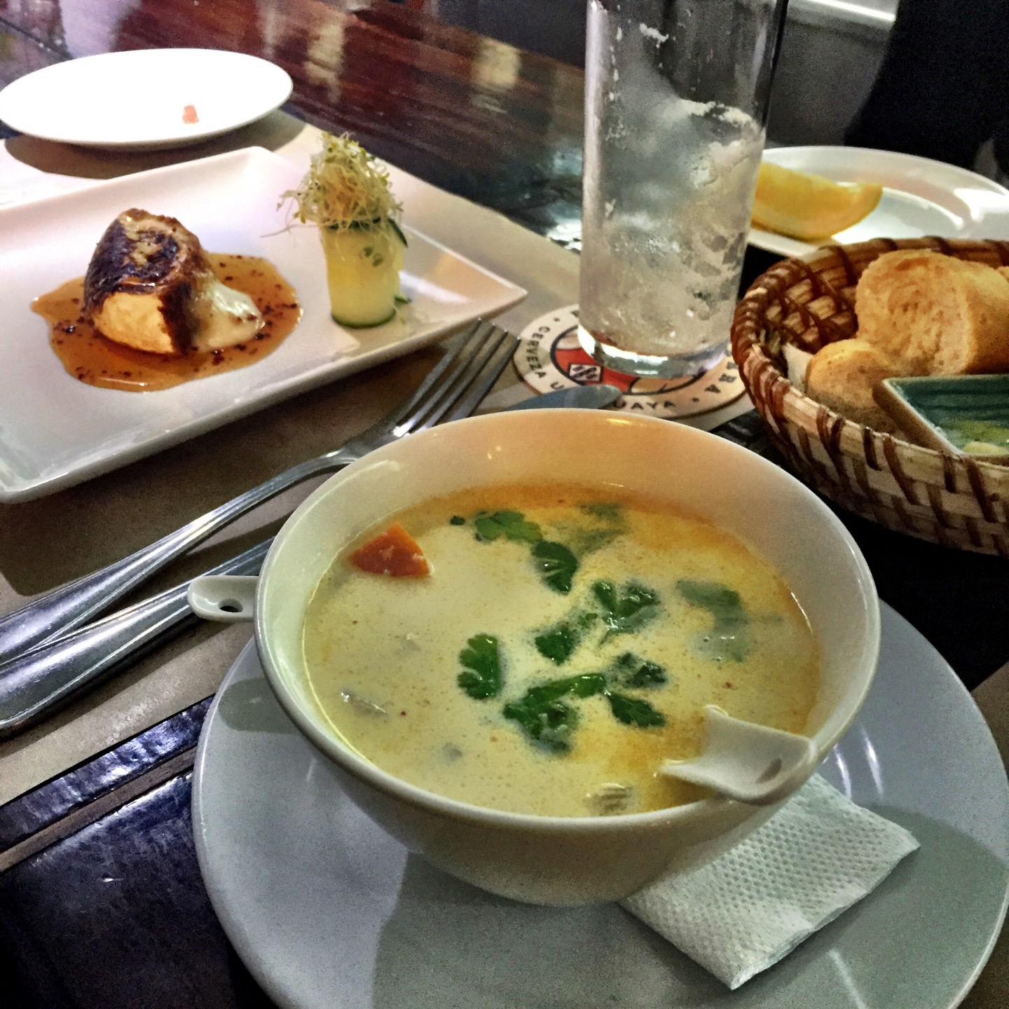 Excelente lugar, es una barra larga... buena atención y comida... Pedimos la pesca del día, sopa de pescado, queso asado y el flan de chocolate blanco, todo riquísimo !!!