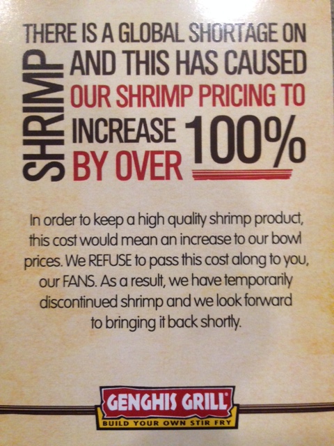 We'll bring shrimp back as soon as possible. In...