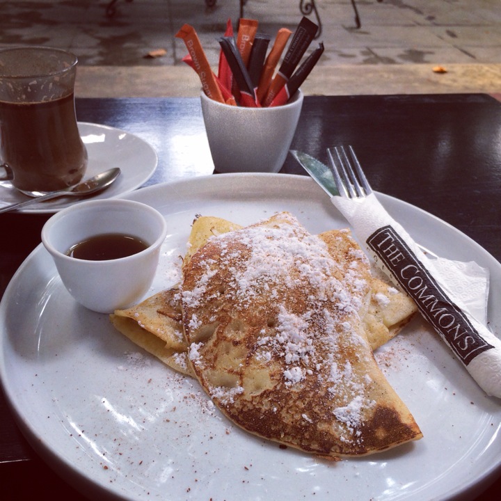 Late Sunday Breakfast, Pancakes With maple syrup and a Choc chunk cookie latte. #Commons #Colombo #SriLanka #Cmbfav