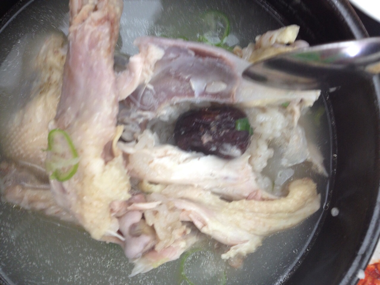 也是韩国有名餐馆哦!韩国首尔有名的参鸡汤,鸡肚里放了很多珍贵的食材,有大枣,人参,还有主食米饭韩国首尔有名的参鸡汤,鸡肚里放了很多珍贵的食材,有大枣,人参,还有主食米饭!鸡汤炖的很浓郁,每天排队的人很多,一份参鸡汤可以三个人吃哈哈!两大一小三人哦!值得推荐!也是韩国有名餐馆哦!