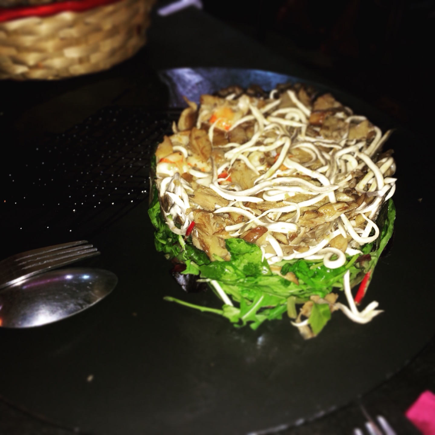 La ensalada de gulas, gambas y setas está espectacular! Y el pollo borracho muy recomendable #simfiltros #patiochico #torrevieja #repetiremos #gastronomía