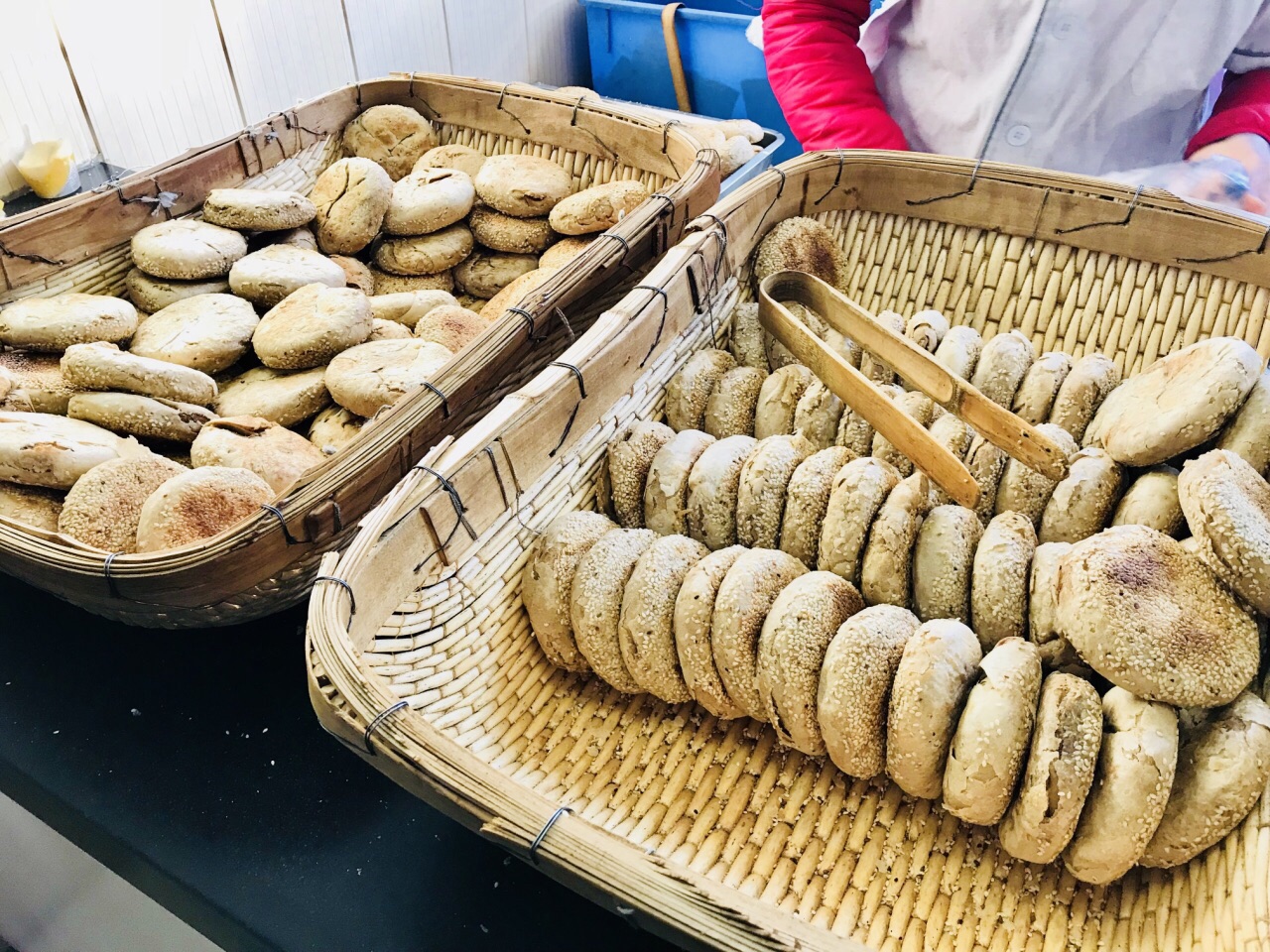 李小老烧饼 网红烧饼店,终于拔了草,虽然没机会吃他家的早餐,但还是买到了自己心心相念的烧饼。位置还挺好找的,清真寺附近。周边很多清真小吃店,未到店就闻到了浓郁的香味。服务还好,不算热情。店里面积挺大的,两排长桌椅,店外也可以就餐,不过冬天有点冷…… 素烧饼1.2元一个 其实也是麻酱烧饼。咸甜交织,烧饼的层次多,且每层的味道都均匀香甜,回味咸香,酥脆可口,越吃越香。 牛肉烧饼3元一个 比素烧饼更惊艳!牛肉的肉质不错,很有嚼劲,肉汁沁入饼层,每层都是浓浓的香。里层会比外层更油润一些,整体吃起来比麻酱的口感更丰富,更湿润。 一边吃着烧饼,一边暗自记下一定要找机会去他家吃早餐,烧饼配豆泡汤一定棒极了!