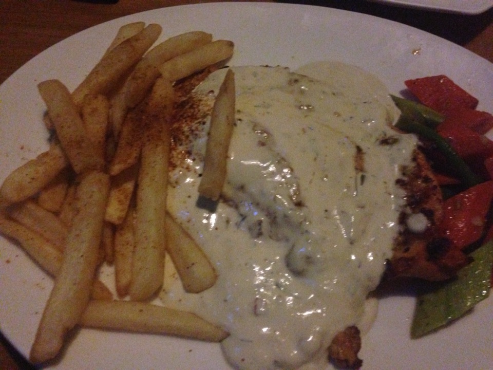 Moroccon chicken steak is great but cold served on a plate. And never order their chicken bbq blah blah platter