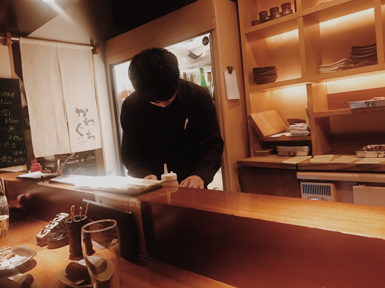 “名鸡荟萃”是かわぐち的一大招牌。鸡串原料是从伊勢赤鶏、大和肉鶏、丹波地鶏等日本“铭柄鸡”中精选而来,每天不固定是哪一种类,所以定期去品尝一下,还会有新的期待与惊喜。 1楼是吧台与开放坐席,可以伴着烤串的炭火香气,边有滋有味地吃着盘里的鸡串,边隔着透明玻璃,从滋滋作响的炭炉上,选择下一个想要尝试的目标。3楼是以雅间为主,远离嘈杂的烟雾缭绕,和朋友可以谈笑风生,开怀畅饮。 吧台处的烤串小哥对鸡肉的知识了解的非常详细,所以,不同部位什么火候,调味的多少都能相当准确的把控。这也许就是能把撸串这种街边小吃发展成摘星名店的技高一筹之处。
