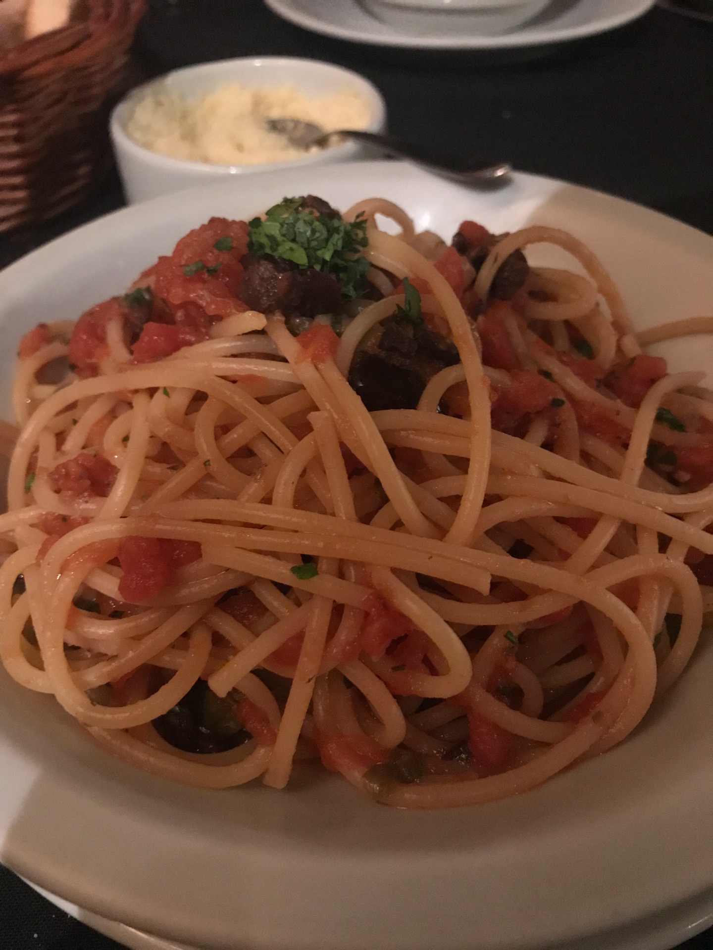 Spaguetti alla puttanesca recomendadisimo ! Sie...