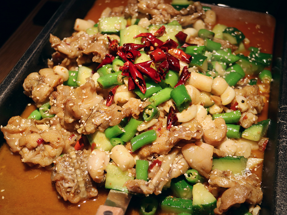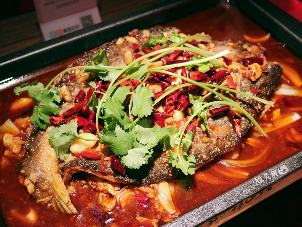 这家餐厅新开不久,装修风格走神秘路线,黑红相配,炫酷十足,潮流时尚之中又有清新的绿植墙,田园风和工业风强烈撞击。 发现一款有趣的座椅,椅面竟是由许多小圆棍组成,有意思的是这些小木棍是活动的,当人坐上去时,它们会像弹簧一样随着压力下沉,很贴合并没有不舒服的感觉,很有创意的椅子。 香辣味烤鱼,看菜单有15种口味,点了香辣味和蒜香味(不辣),照顾不同口味的需求,而我自然是喜欢香辣味的。鱼肉外焦里嫩,香辣可口,边吃边加热,入味更佳。 香辣孜然味牛蛙也不错,肥厚扎实,滋味鲜美,做为配菜的年糕和黄瓜也很出彩,被挑个精光。 带着仙气的销魂花甲,是道凉菜,甜辣之中带着酒香。 冒菜自然不可少,冒鹅肠麻辣脆生,冒脑花则是我的最爱,没有腥味,入味好吃。 爱好面食的不要错过碗仔小面,面条细而有嚼劲,搭配豌豆、豇豆、肉燥和烫生菜,以及鲜辣的汤汁,如果不是已经饱了,一碗根本不在话下。 酸辣粉,酸辣入味,Q弹爽滑,油而不腻。 好友相聚怎能少了酒?这款时尚青春的小瓶白酒,度数较低,易入口,不烧喉,即使平素较少喝酒的朋友,也能小酌一杯。 最后的甜品是沙拉,苹果、哈蜜瓜等水果切粒,装在小巧的甜筒里,一口酥脆,一口清新,口感相当美妙。还有附赠一份爆米花呢!