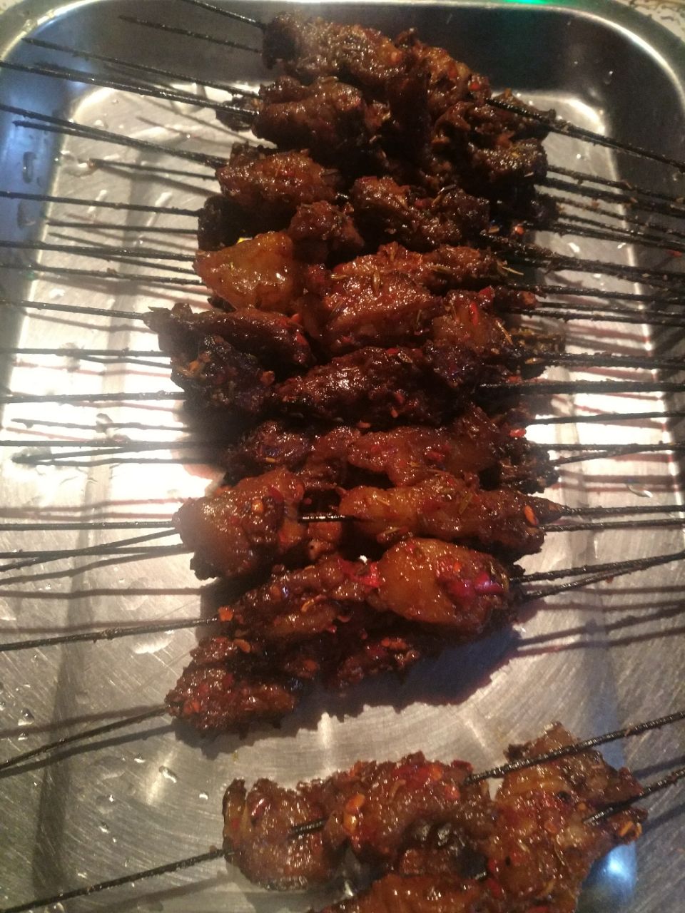烤的东西种类不多,小串的肉和腰子,腰子超级嫩。吃的就是氛围,所以环境就不能强求了店很隐蔽,在一条巷子里,如果不是朋友带着都不知道有家店。烤的东西种类不多,小串的肉和腰子,腰子超级嫩。吃的就是氛围,所以环境就不能强求了。