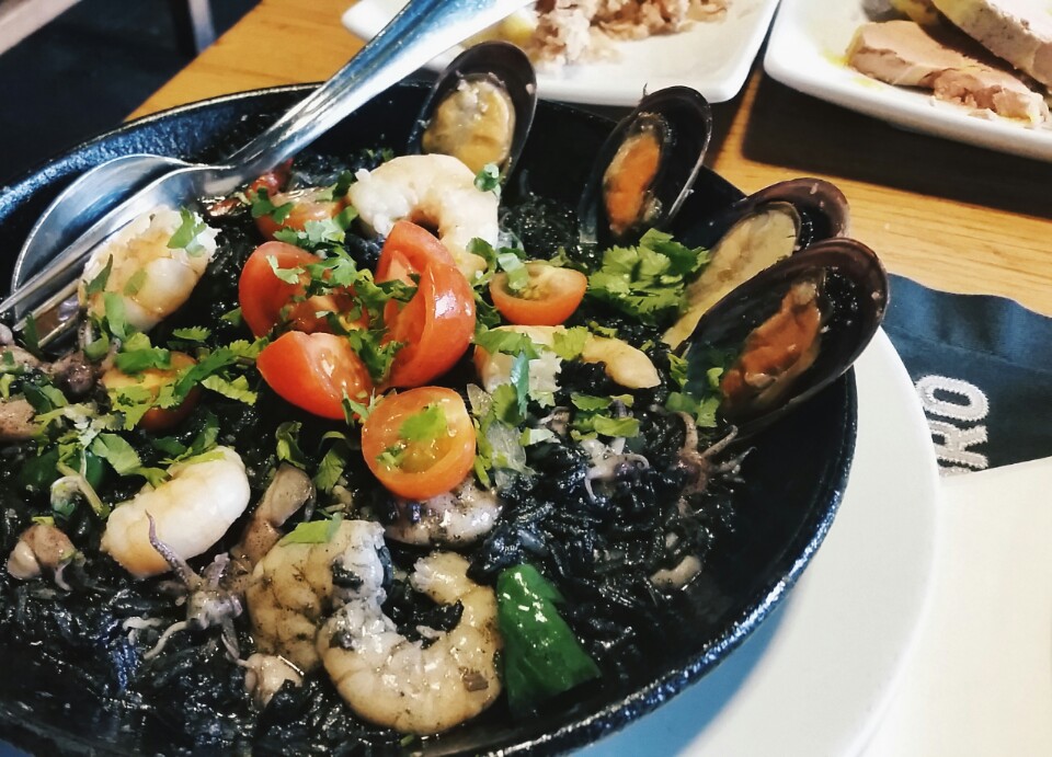 Amazing black rice! Great grilled sea bass. Fried baby squid is also top notch. An altogether excellent meal.