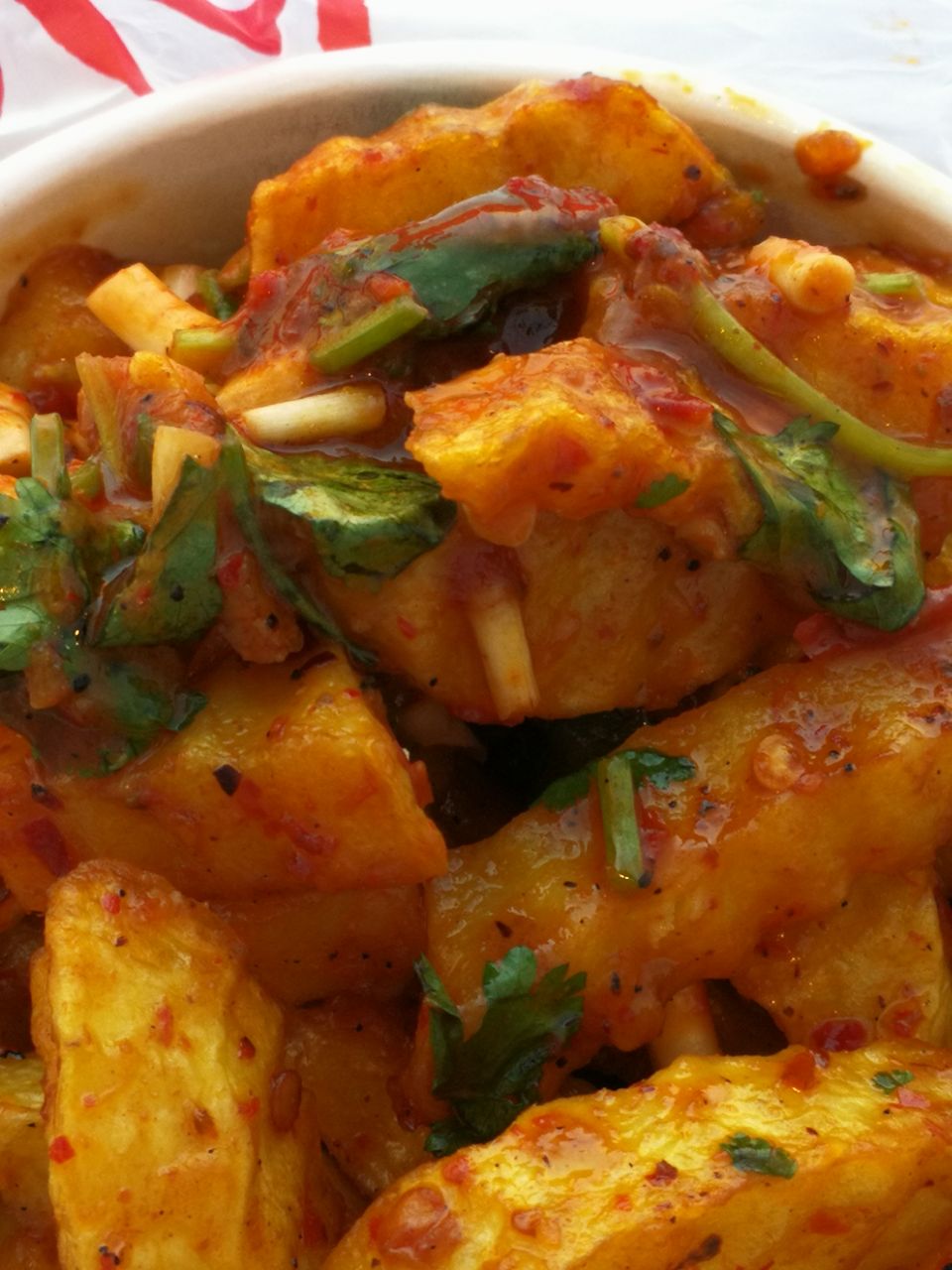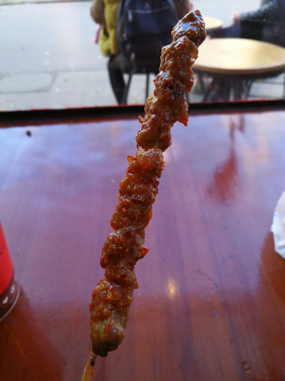好久没有吃它家的烤肉,趁着周末去买点。这次全部要了蜜糖加辣的,因为之前吃都是不加辣,另外还要了炸洋芋,特别提醒洋芋要炸熟一点。店里人稍微有点多,还有外卖单,感觉服务员很忙,等了20分钟才做好。味道还不错,甜辣味很爽而不怪。洋芋也比较好吃,酱有特色。下次还会再去。