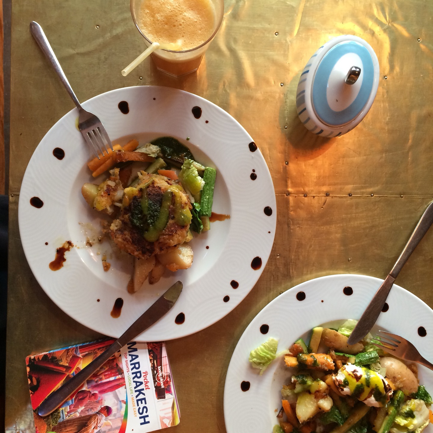 A respite after the streets' chaos. The women who work here are absolutely lovely. Seating is interesting, with many floors and nooks to choose from. The veggie burger was decent, the juice amazing!