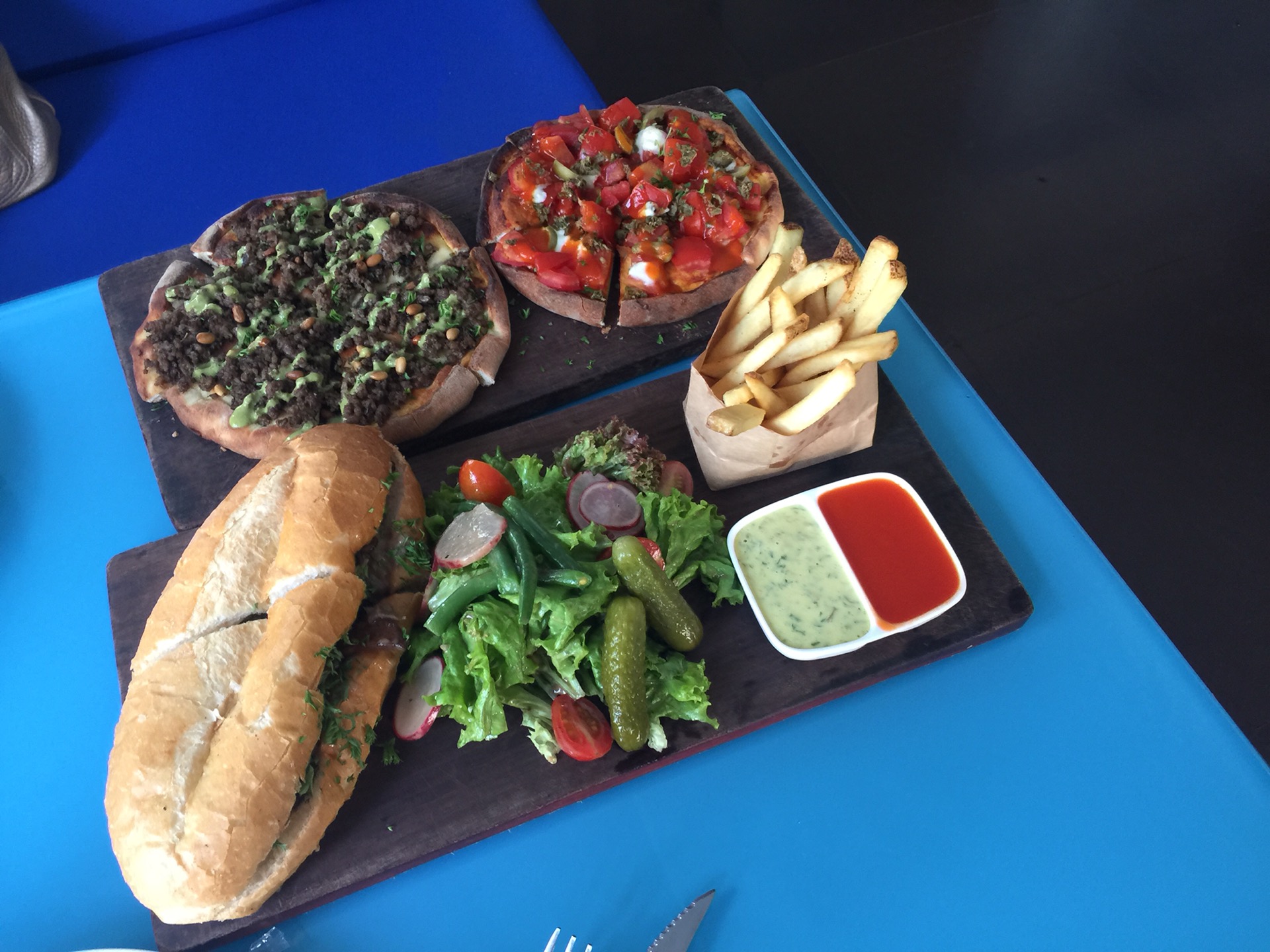 Free wifi,try philly cheesesteak & greek pizza,taste good,arab flatbread not good.I like the way of Vnmese thin waiter speak English,very funny & confident.Friendly service,price abt 200.000vnd/pax
