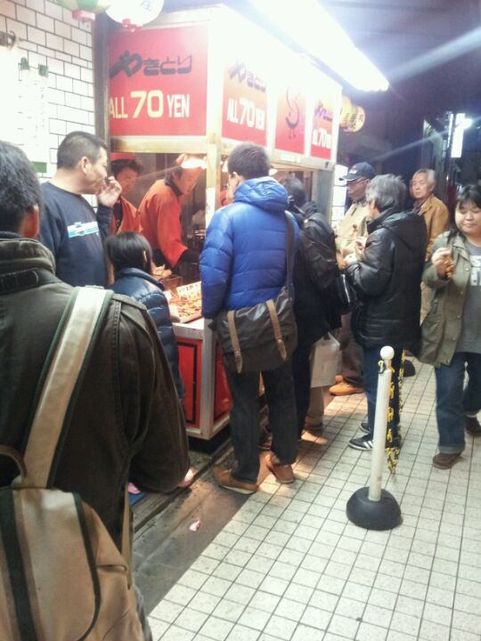 2015年現在の外食いは一本80円(写真は2012年頃のもの)。食べた串をまとめておいて、最後...2015年現在の外食いは一本80円(写真は2012年頃のもの)。食べた串をまとめておいて、最後に本数で会計するシステムです。