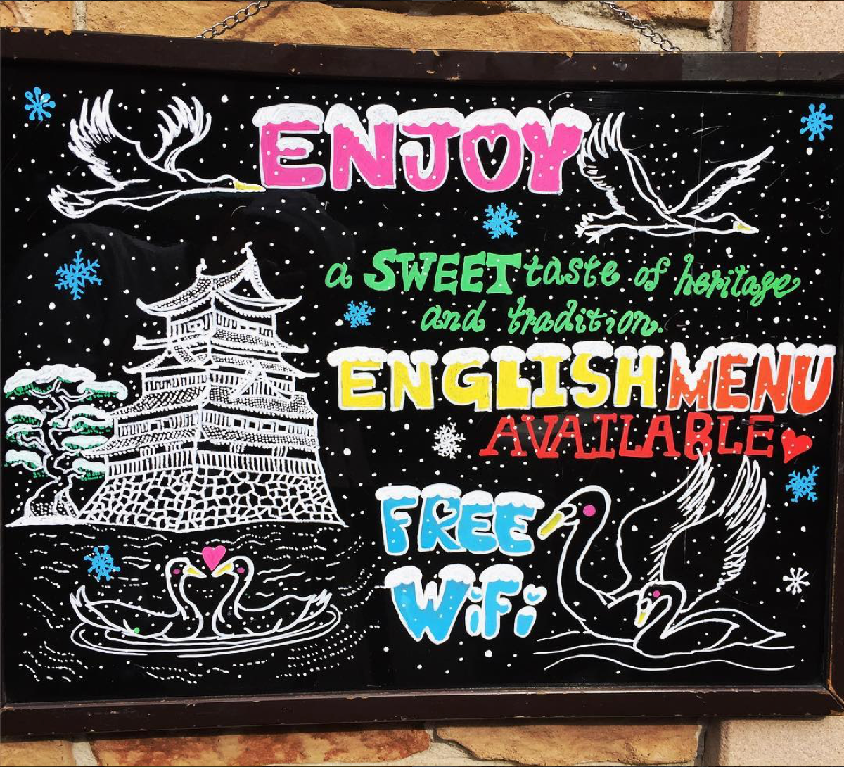 スイート縄手本店はWiーFi フリー♪ スタッフが手描きしたこの看板。細かいところまで描き込ん...スイート縄手本店はWiーFi フリー♪ スタッフが手描きしたこの看板。細かいところまで描き込んであるので是非じっくり見て下さいね! by #SweetNawate
