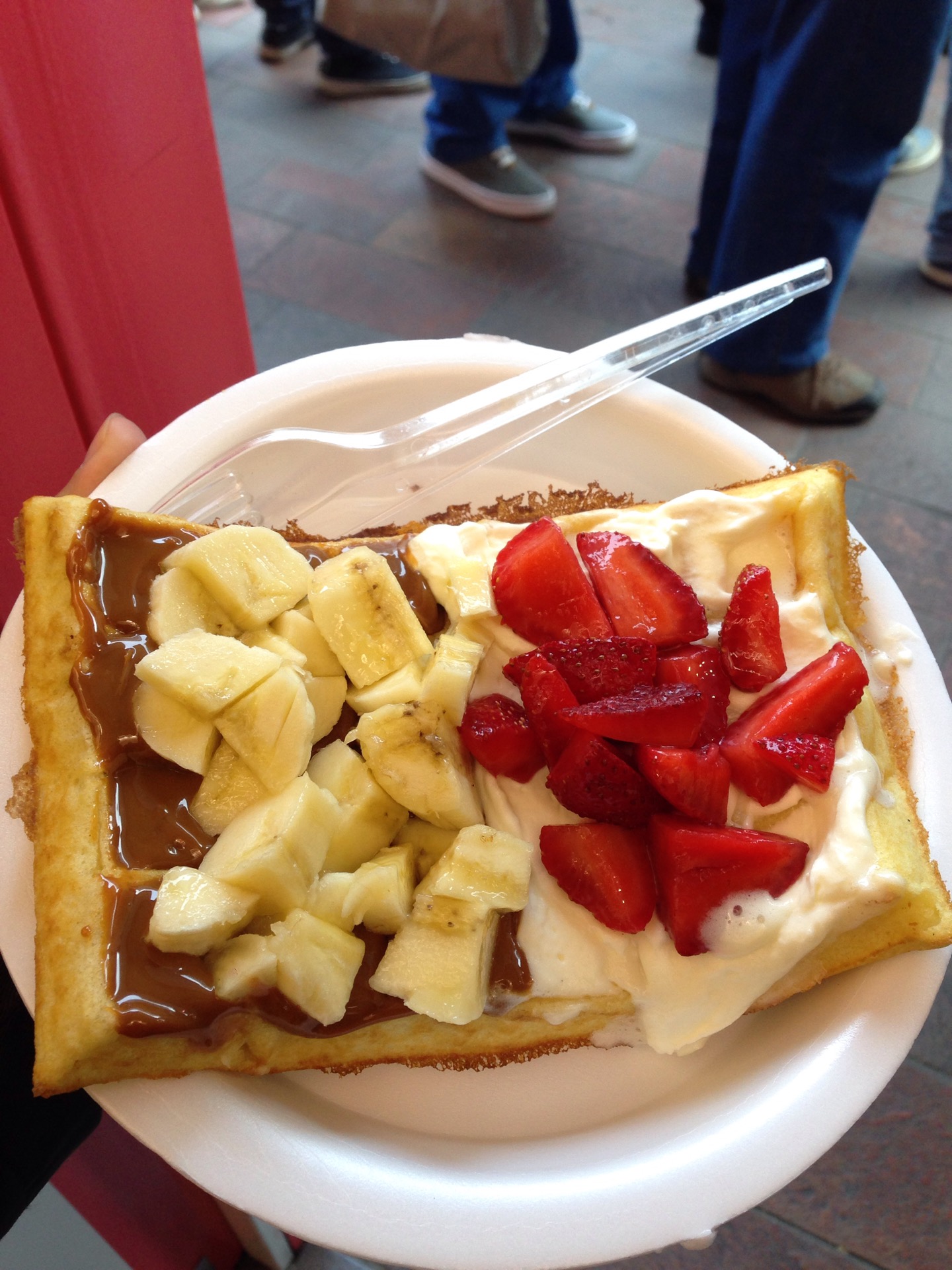 En la fábrica de helados no dejen de pedir el waffle con dulce de leche, chantillí, frutilla y banana.
