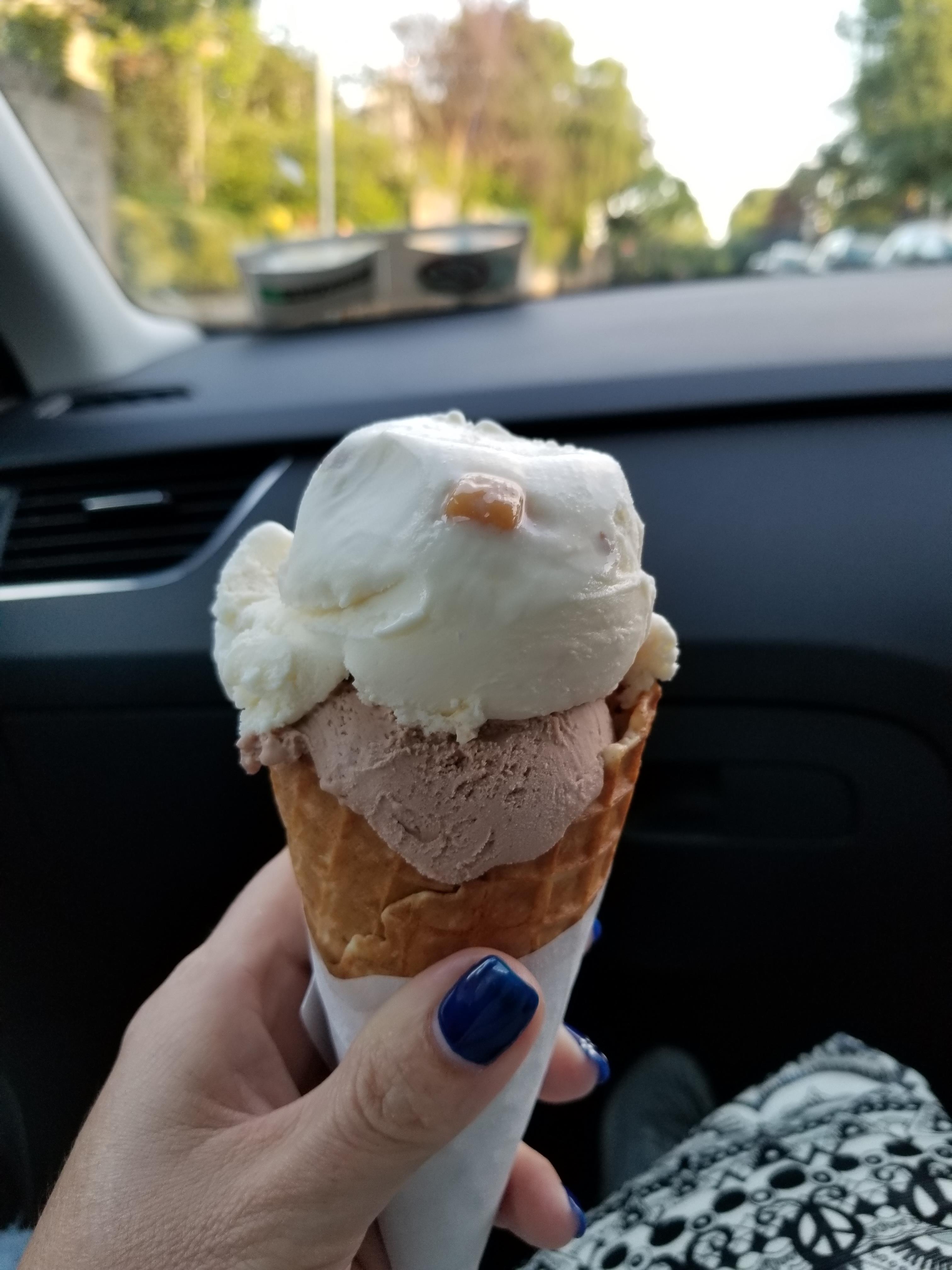 Everything looked really Good! Got the nutella ...Everything looked really Good! Got the nutella and toffee fudgy wudgy ice cream in a waffle cone!