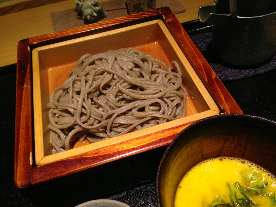 溶き卵に、濃いめのつゆを少しずつ加えながら食べる、熱もりせいろ最高です。