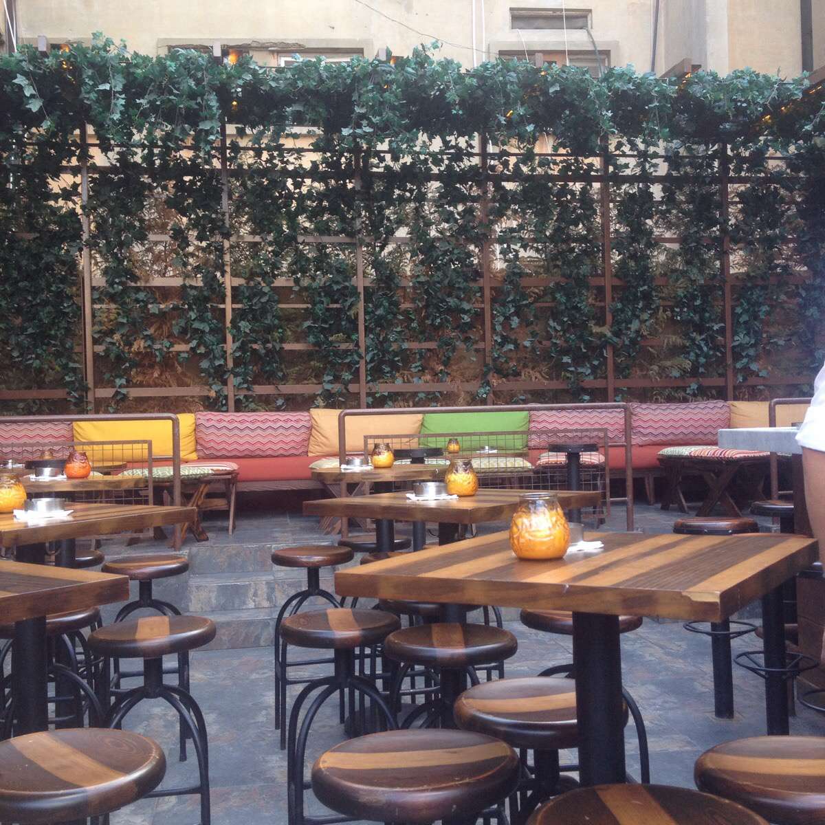 The space is nice with a terrace feel even though it's on the back-facing balcony of a building's first floor where you can look into some people's homes.