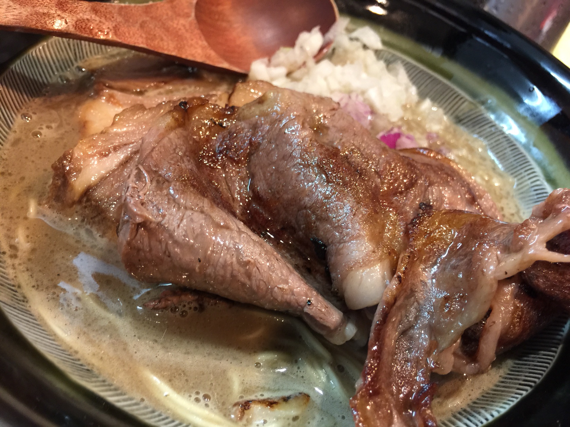 麺屋晴さん・やまのさん・海月さん・中華そば伊吹さん・烈志笑魚油 麺香房 三くさんのコラボラーメン『海晴 伊月スー三』をサーロインステーキトッピングでいただきました。濃厚煮干スープに細麺がよく絡み、みじん切りの玉ねぎがサッパリ感を醸し出す至高の一杯でした。これぞ一期一会のラーメン、ごちそうさまでした*\(^o^)/*