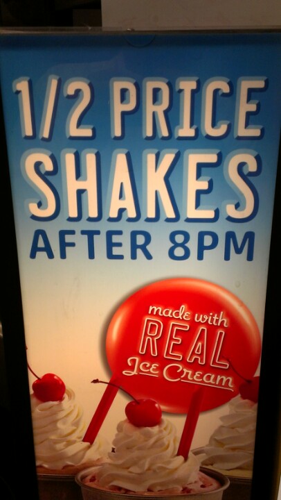 1/2 price shakes after 8pm.