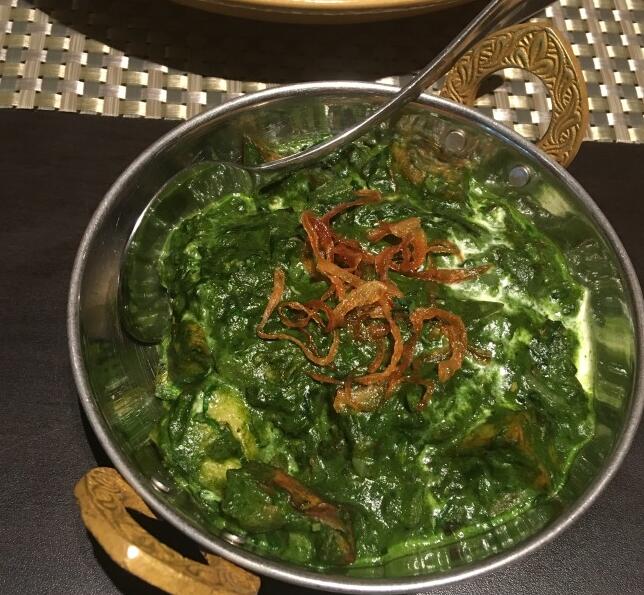 点菜时间起码纠结15分钟,有中文解释也看不懂每个菜的烧法口味和菜量,印式英语解释也不太能明白,最后还是看着菜单的中文解释把菜给点好了,相当煎熬呀!(印度飞饼)是前菜,点了多了,点了拼盘,有一款口味是辣的,真的是巨辣。其他口味很棒,值得推荐,非常薄软。非常正宗,值得打包。(洋葱佐烤鸡肉)有点苦啦!烤焦了,上面这层绿咖喱倒还不错,但是鸡肉还是偏柴了,(印度咖喱)还是蛮不错的,相当下饭,也不会很辣,蔬菜品种很多。(豆腐萝卜鸡肉烤串)豆腐巨难吃,萝卜反而是最好吃的,抢了风头。(印式炸鸡腿)点了那么多鸡肉类的,也只有我了,终于点到好吃的炸鸡腿了,火候刚刚好。