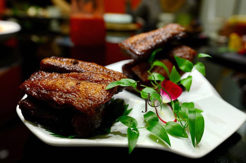 瑞虹新城的月亮湾那边最近新开了好多店,又发现了我最喜欢的丰和日丽分店。虽说丰和日丽也属于丰收日集团,菜的味道可已不光是以江浙为主的咸鲜味了~ 上海熏鱼做的浓油出酱一看就是很本帮的味道了,甜滋滋的很喜欢额。 和田牛排做的比较清淡,原汁原味的牛肋骨旁边配了三碟料,爱重口的可以自己沾着料吃,我喜欢牛肉原有的香味,带着丝丝的牛筋吃起来口感还是很嫩的。 一手好牌和番薯糖水都是很有新意的甜品,一手好牌做的是特别的细腻逼真,很喜气很好玩的,口感也不错。番薯红糖水姜味略重,如果是中午来上一碗的话会更赞,里面的番薯也是粉糯好吃的。