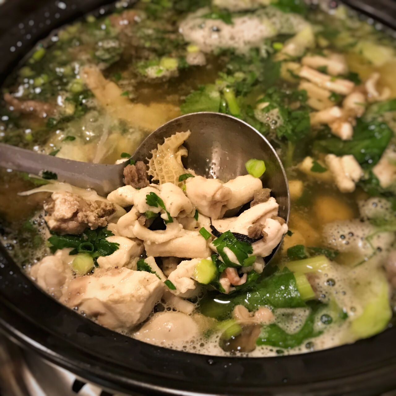 非常热情,做了讲解和推荐,首先一锅牛杂是老板搭配好的,我们又加了脑花和骨髓,之前就被朋友推荐要...