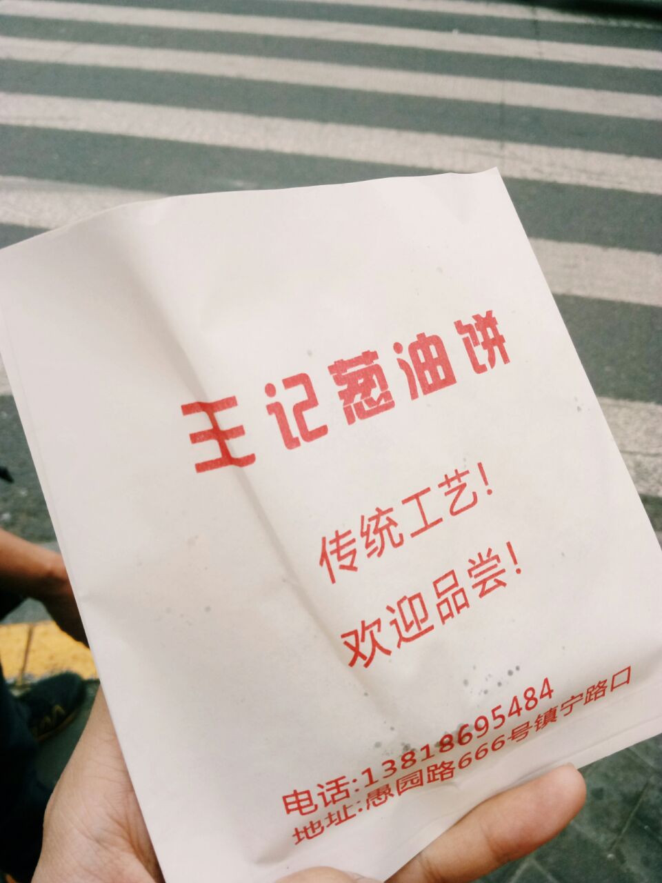 离愚园路富春小笼不远处的这家王记葱油饼,周末过去的时候发现生意倒也挺好,总体味道虽然比古美路上的那家古法葱油饼要稍显逊色,但是吃吃也不错。 之前好多帖子都推过这家葱油饼,一开始火起来的时候生意非常好,排队基本20分钟起步,现在热度回落,等个五六分钟就OK~ 不怎么推荐加蛋口味的葱油饼,容易影响葱油香味和那种让人陶醉的酥脆口感【要说巅峰口感的加鸡蛋葱油饼,我在台湾桃园吃过的那家一心葱油饼算是做的非常好的,把创新和传统糅合的很好】。 招牌的葱油饼从当年的3块,到后面的3块五,再到现在的4块——面对这各种原材料的飞涨,这价格也是无奈。 运气不错,等了5分钟就拿到了新鲜出炉的葱油饼,到手之后用不着急着吃,闻闻香味还是挺好闻的,再等个一分钟,让葱油饼的温度回落,外皮变得更脆一点,就可以一大口咬下去,外皮的香脆+葱的新鲜香味+明显的猪油味儿混合在一起,口感颇为讨喜~ PS:老板心态格外稳,即使顾客排着长队,依旧会不紧不慢的让葱油饼先沥一会儿油,保证吃着不会太油腻。