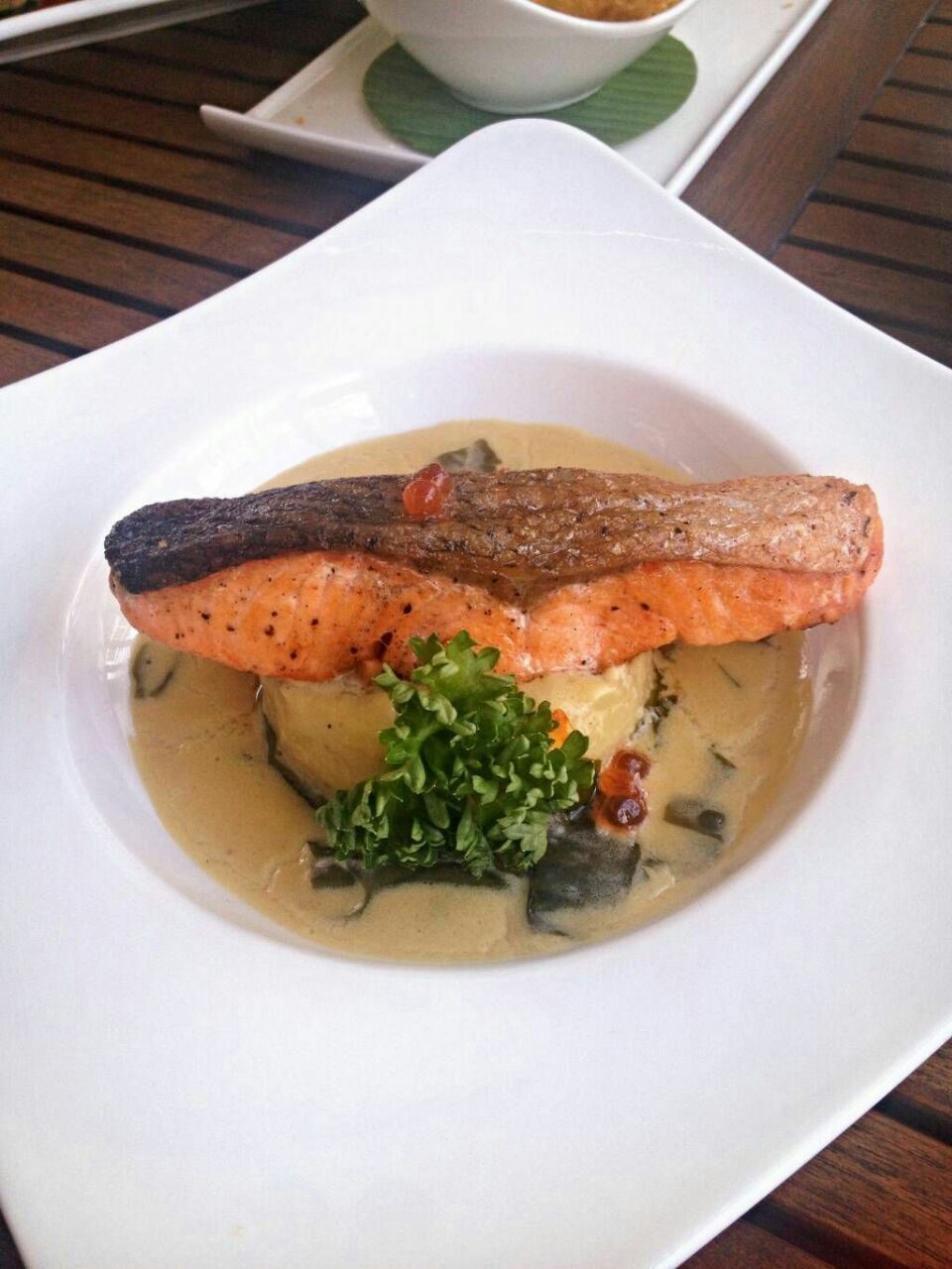 推荐露天的就餐区,虽然稍微热一点,但是真的风景还不错,吃的东西偏向于西式的感觉,三文鱼还不错,...还不错的一家餐厅,推荐露天的就餐区,虽然稍微热一点,但是真的风景还不错,吃的东西偏向于西式的感觉,三文鱼还不错,味道很浓郁,是西式的做法但是有泰国的风味,鲜榨火龙果也很好喝。