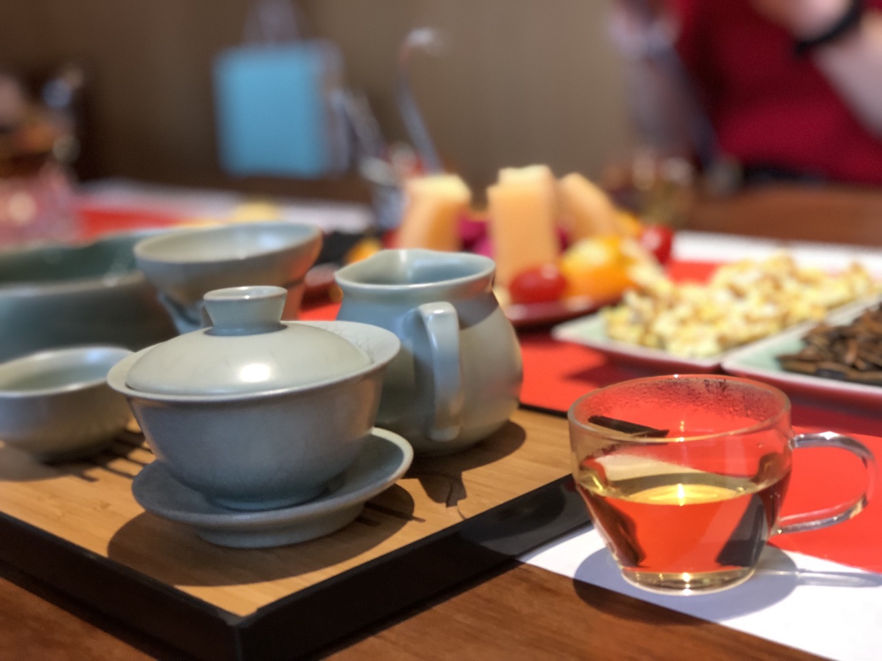 上次在隔壁吃饭,饭后往家走的时候路过这里,就对这里念念不忘,朋友把这件事记在心上,这就带我来拔草了~~ 虽然没有预约上室外的独立小包间,室内也很赞~隔音特别好,温度也好~~ 这家有别于其他吃茶的地方的是 他们家可以点香,我不懂香,但是看香炉很赞,香烟袅袅,意境很赞 朋友选的是04年的白茶,我们泡了至少4壶,颜色和味道还是没有什么太大的变化~很经泡 当中又一次服务员过来加水,发现他们是袋装水,问了下是安吉的竹根水,百度了一下,竹根水不是用竹子的根泡过的水,也不是从竹子根底下流出来的水。是从高山深箐流出来,不带井水囤积的土味,也没有自来水净化过的异味,纯净、甘甜、透心凉的水。 整体很满意,决定下次来吃面~10元一份,据说很好吃~~