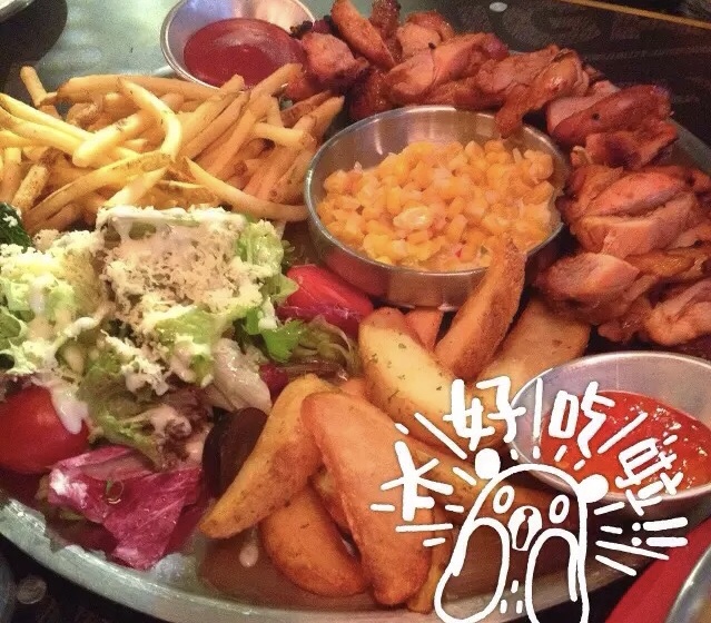 饮品一般吧,没多惊艳。小吃拼盘量真是大!每一种都好吃!两个姑娘都能吃完