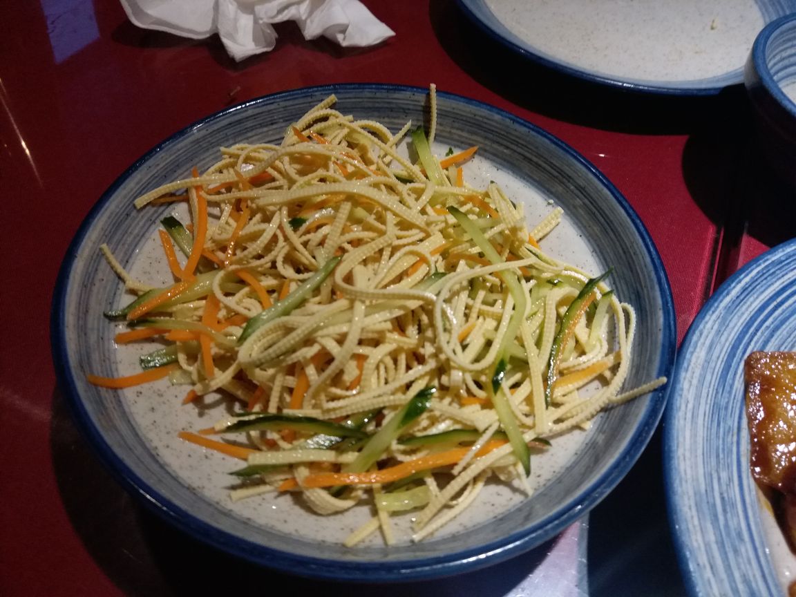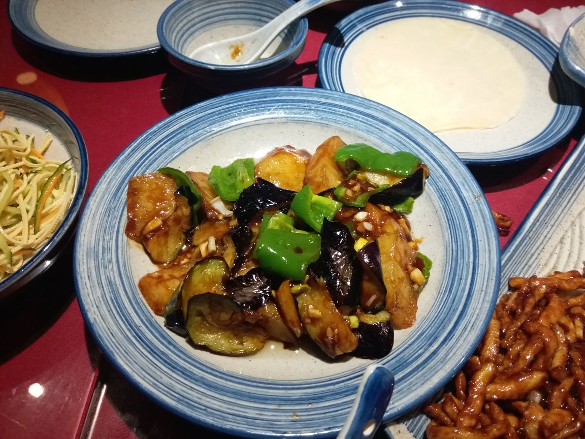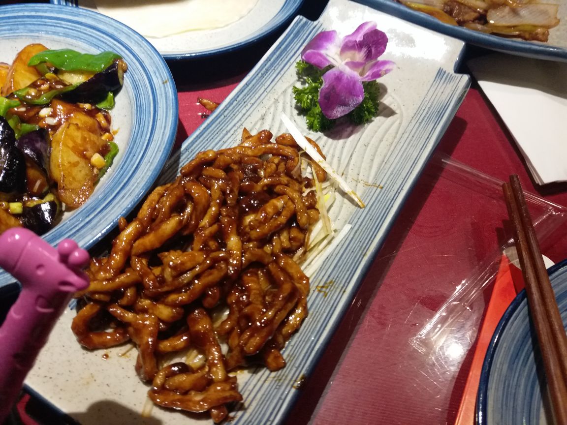 第一次来宝龙城,周四人气不旺,加上下雨人很少,停车4小时免费很不错。大众看到这家北京菜就特地来试下,味道很不错,不同其他北方餐厅,菜量不大,但一家三口也可以,味道到是比在北京吃的感觉还好点,服务也不错,装修很有味道,天气好坐在室外感觉应该很不错